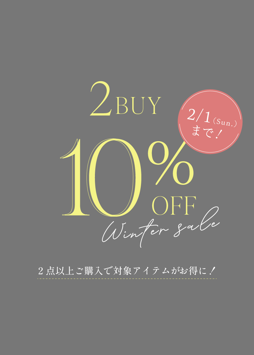 1/16(金)10:00~2/1(日)23:59 2点以上お買い上げで対象アイテムがさらに10%OFF!