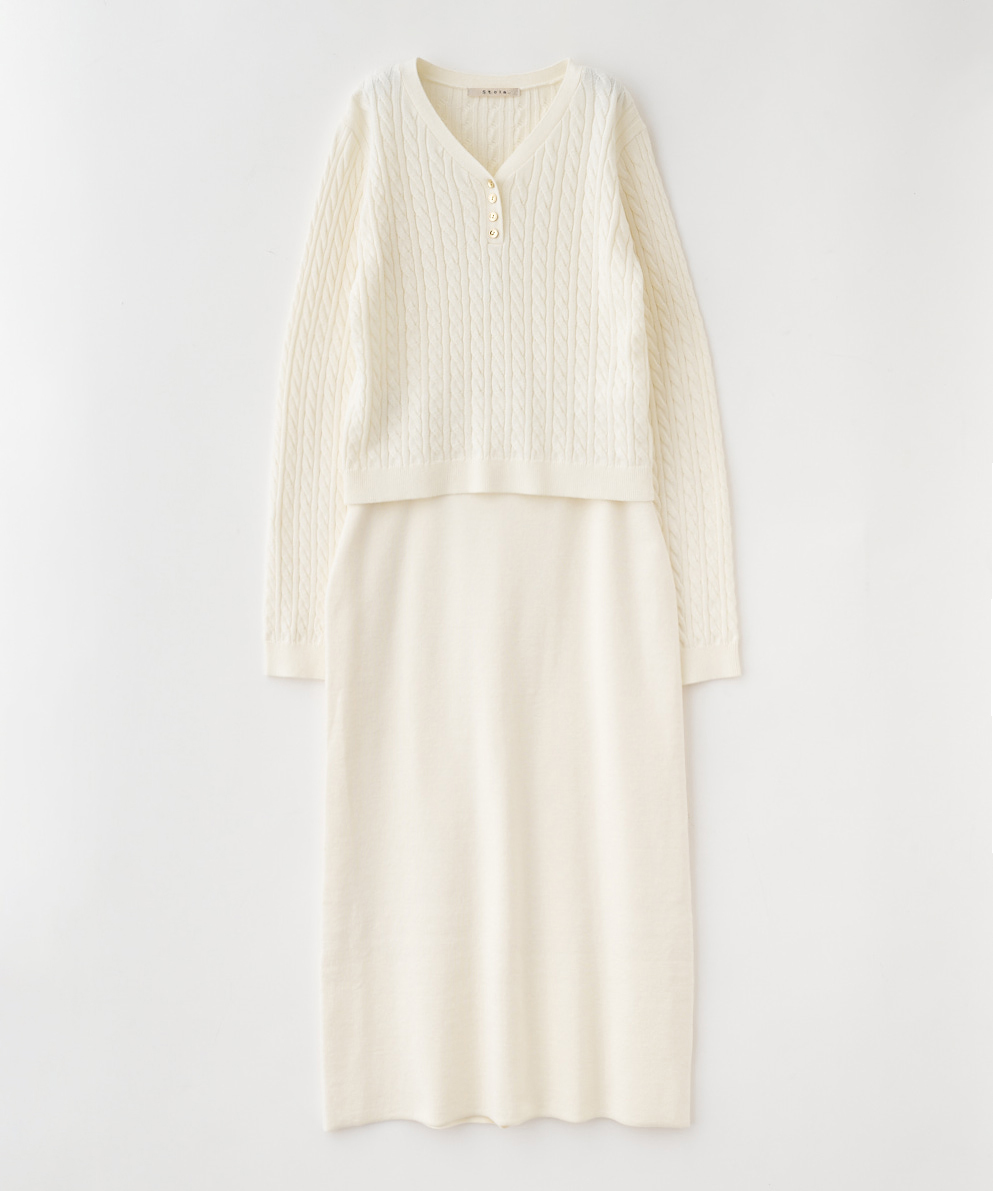 セットアップはニット素材ですが、体型を拾わないのが嬉しいポイント!