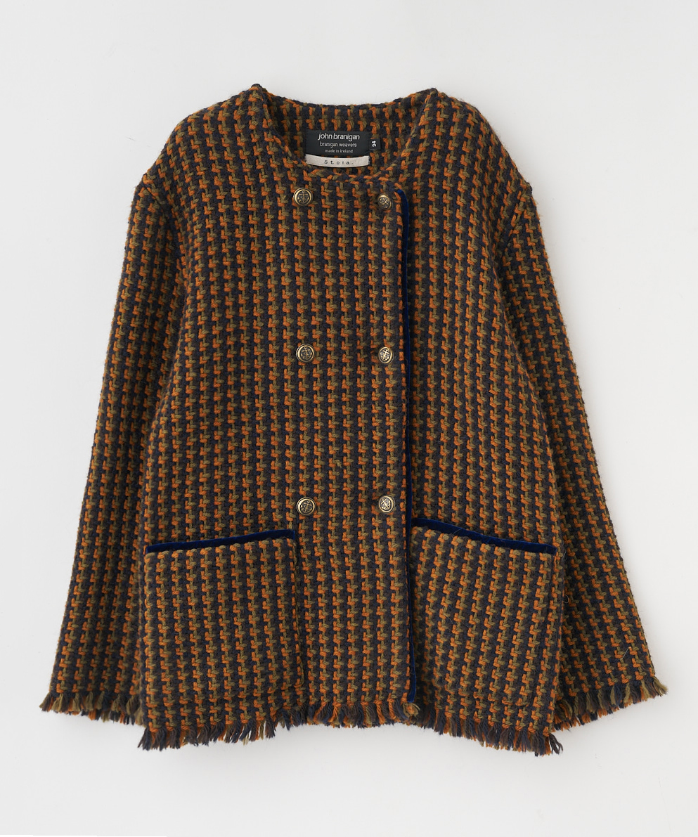 ダブル釦ノーカラーチェックジャケットを使用した他のスタイリング
