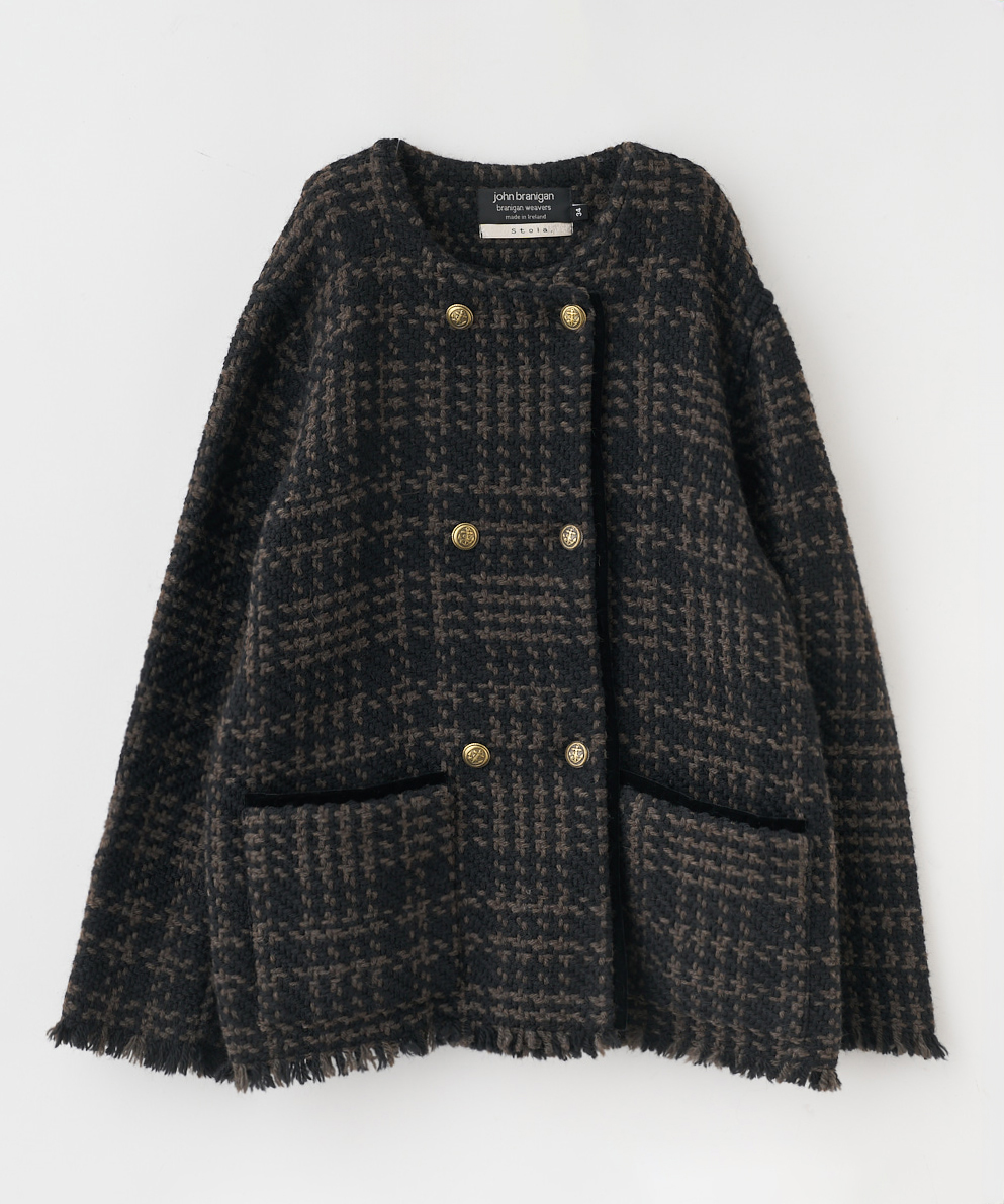 ダブル釦ノーカラーチェックジャケットを使用した他のスタイリング
