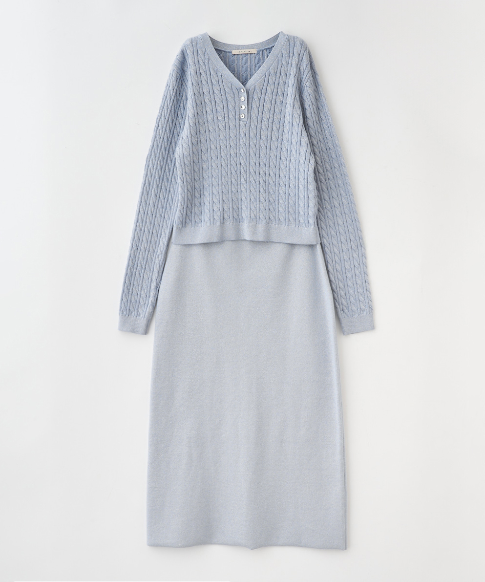 ミニケーブルプルオーバー+ストレートスカート ニットアップを使用した他のスタイリング