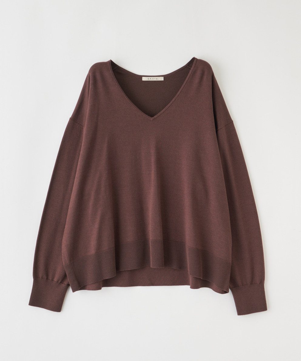 【7色】シルク混ハイゲージVネックニットプルオーバーを使用した他のスタイリング
