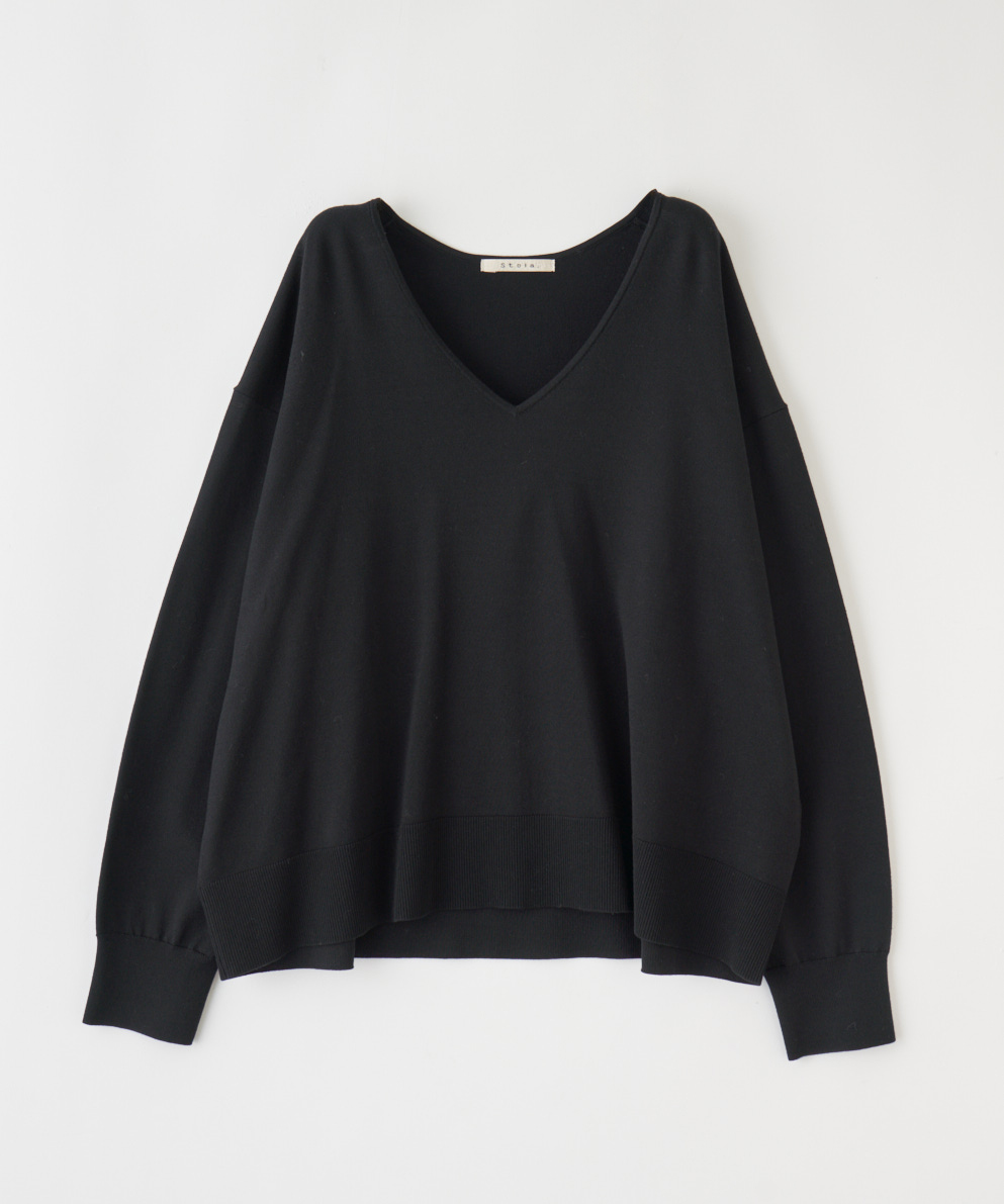 【7色】シルク混ハイゲージVネックニットプルオーバーを使用した他のスタイリング