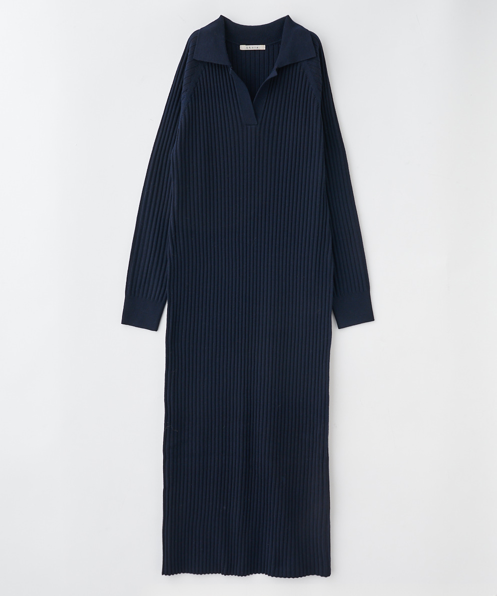 ネイビーのニットワンピースと合わせて、ほんのり甘辛なコーディネートにしてみました⭐︎