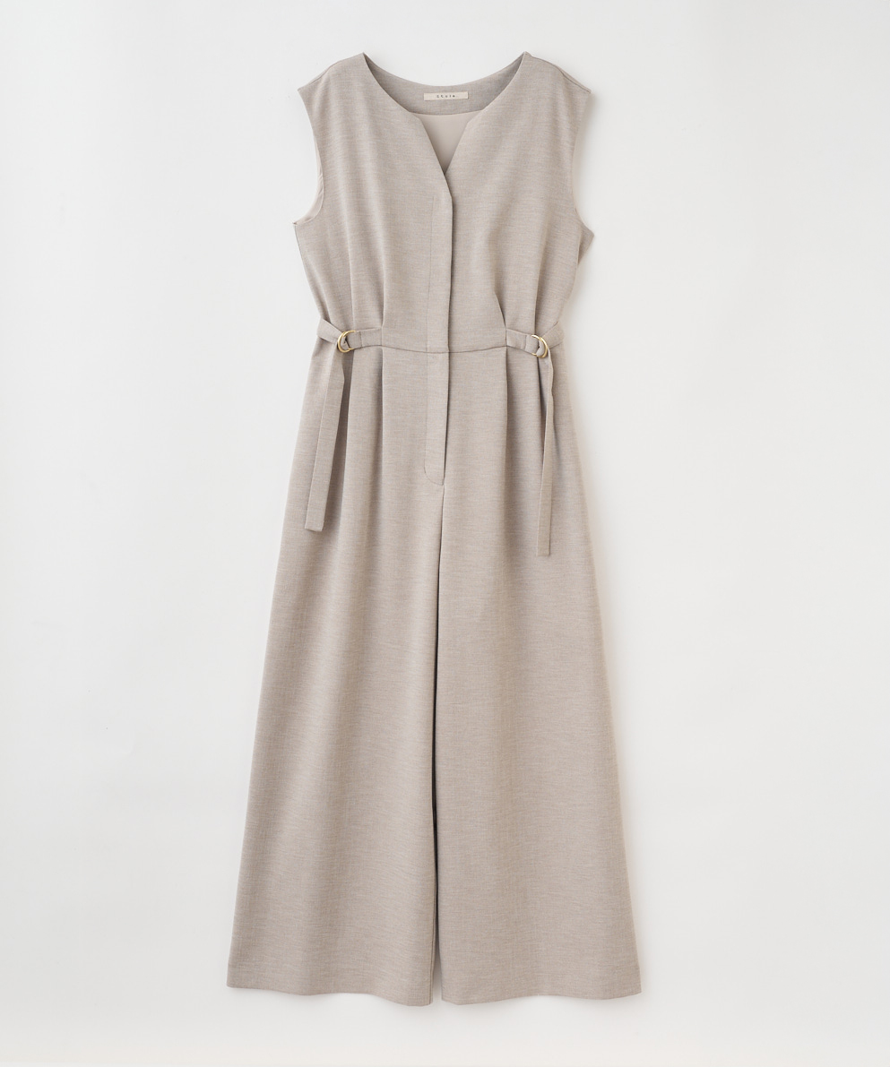 オールインワンはサイドベルトがウエストラインを強調してくれるので、スタイルアップ効果抜群です!シアーハイネックのニットを合わせて抜け感を出し、オールインワンと同素材のジャケットを羽織れば、こなれ感のあるオフィススタイルに♪