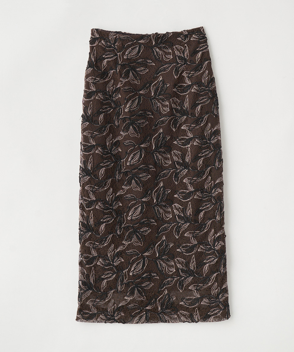 刺繍柄のタイトスカートで女性らしさをプラスしました。