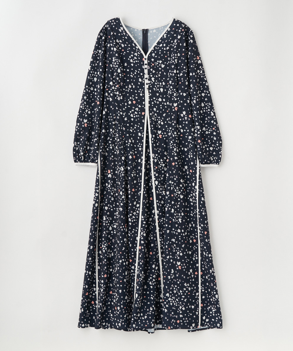 ハート柄ワンピースにジャケットをさらっと羽織って、大人フェミニンなスタイリングに。