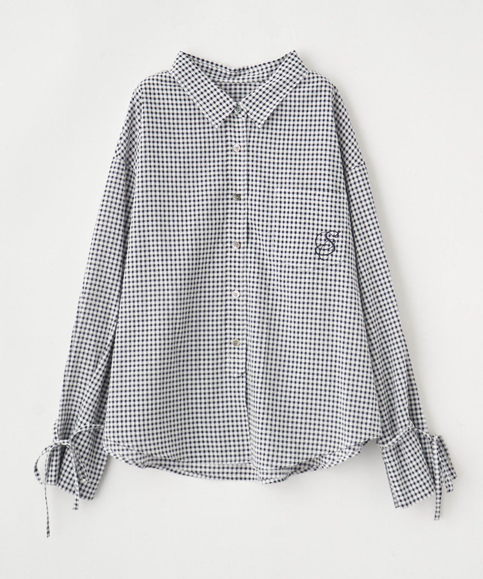 袖のリボンが可愛いシャツと、ピンクデニムで甘めカジュアルに♡