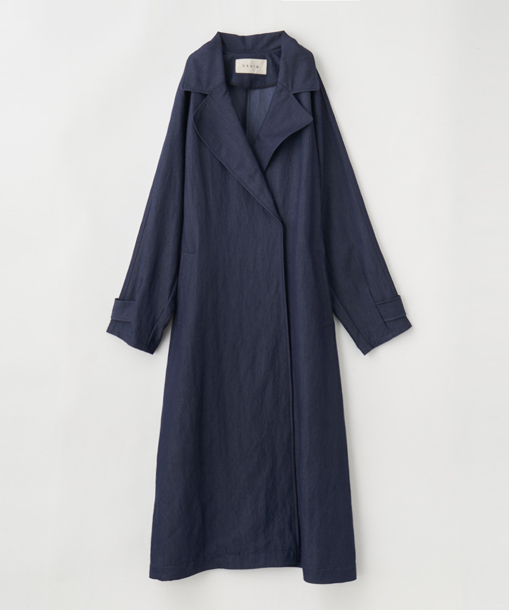 コートはインディゴカラーが珍しくトレンド感もありオススメです!レイヤードにも万能な袖レースのブラウスをコートからチラ見えさせるのがポイントです♪スカートは爽やかなミントカラーにしました。