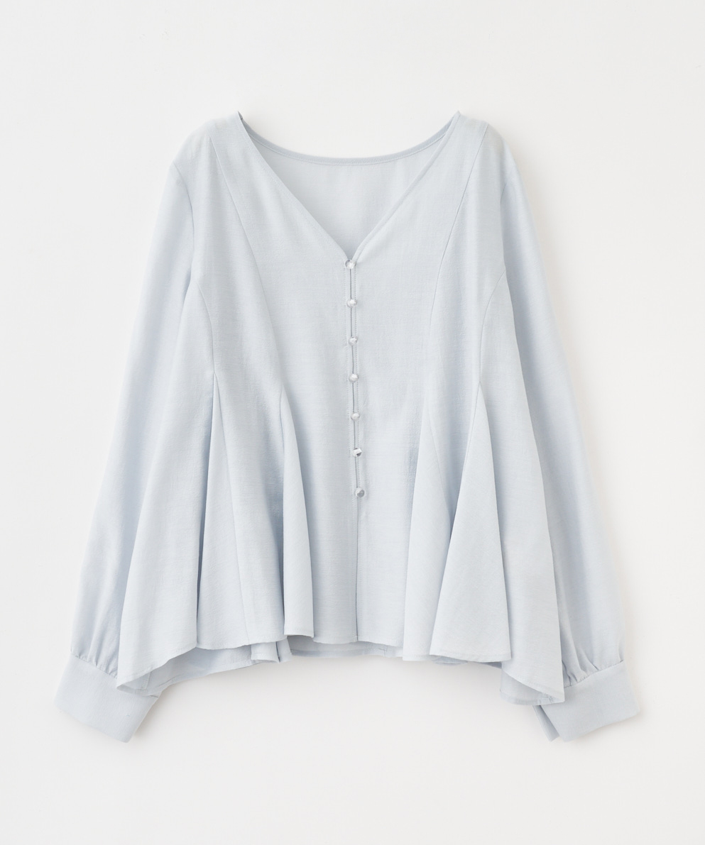 ブラウスの控えめなフレアが、さりげない華やぎをプラス。