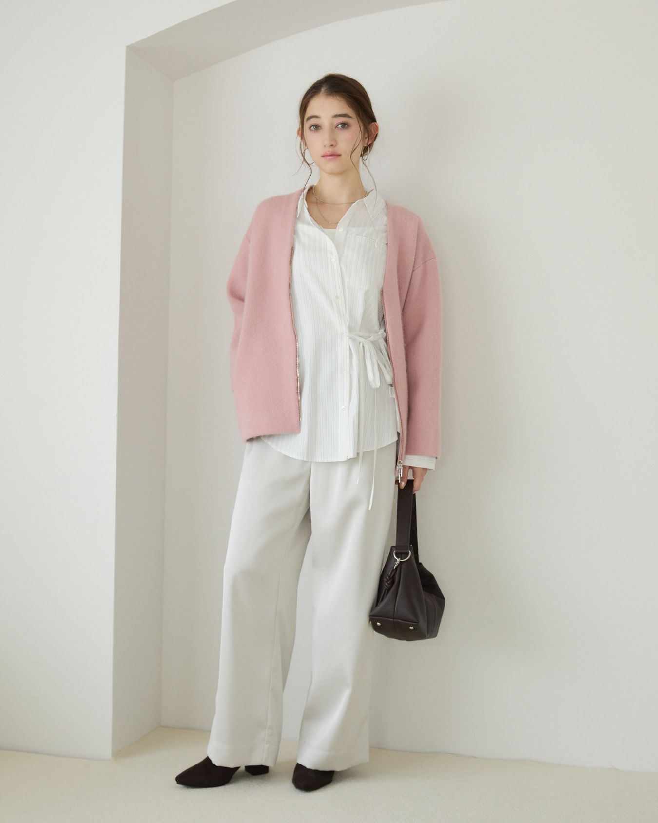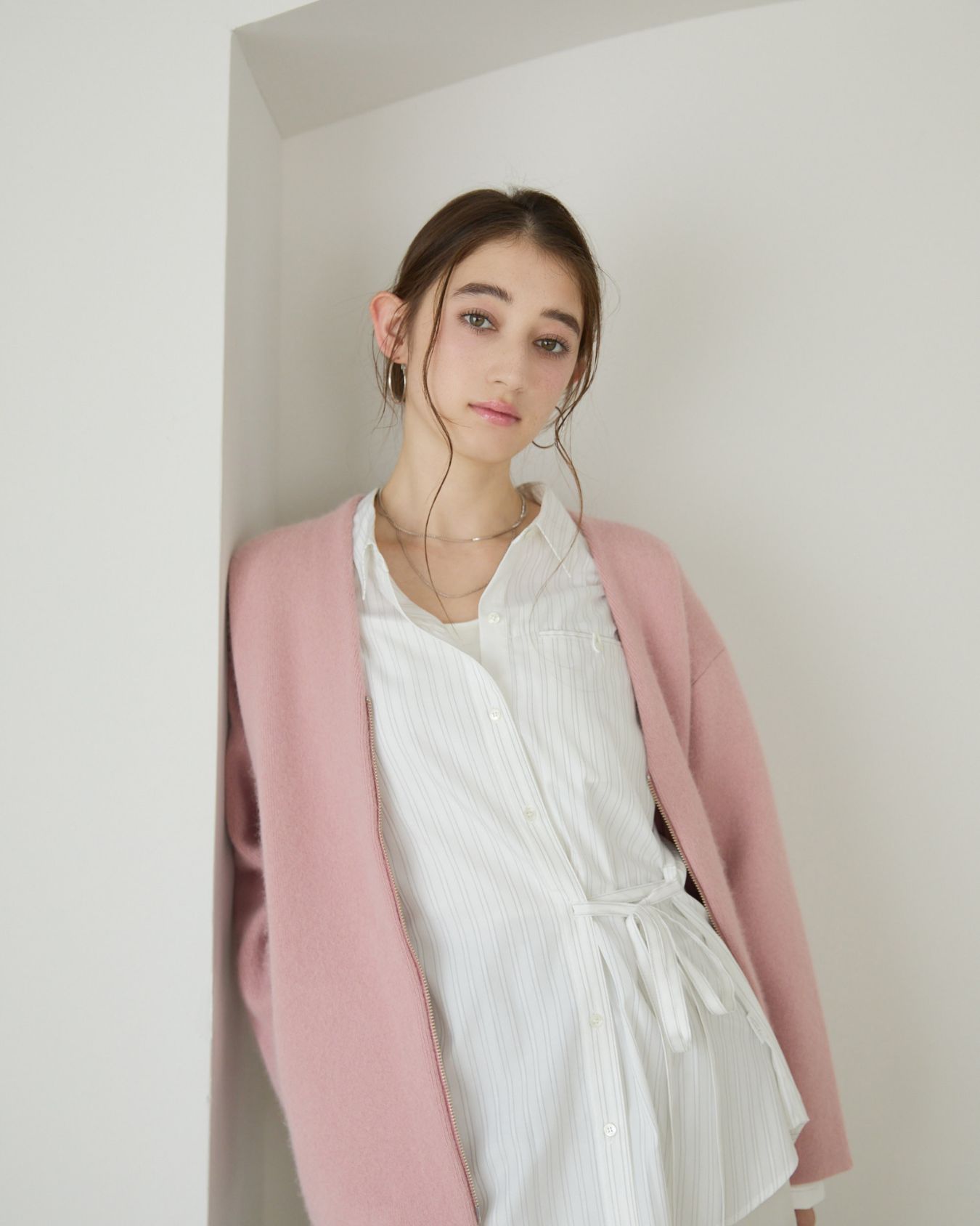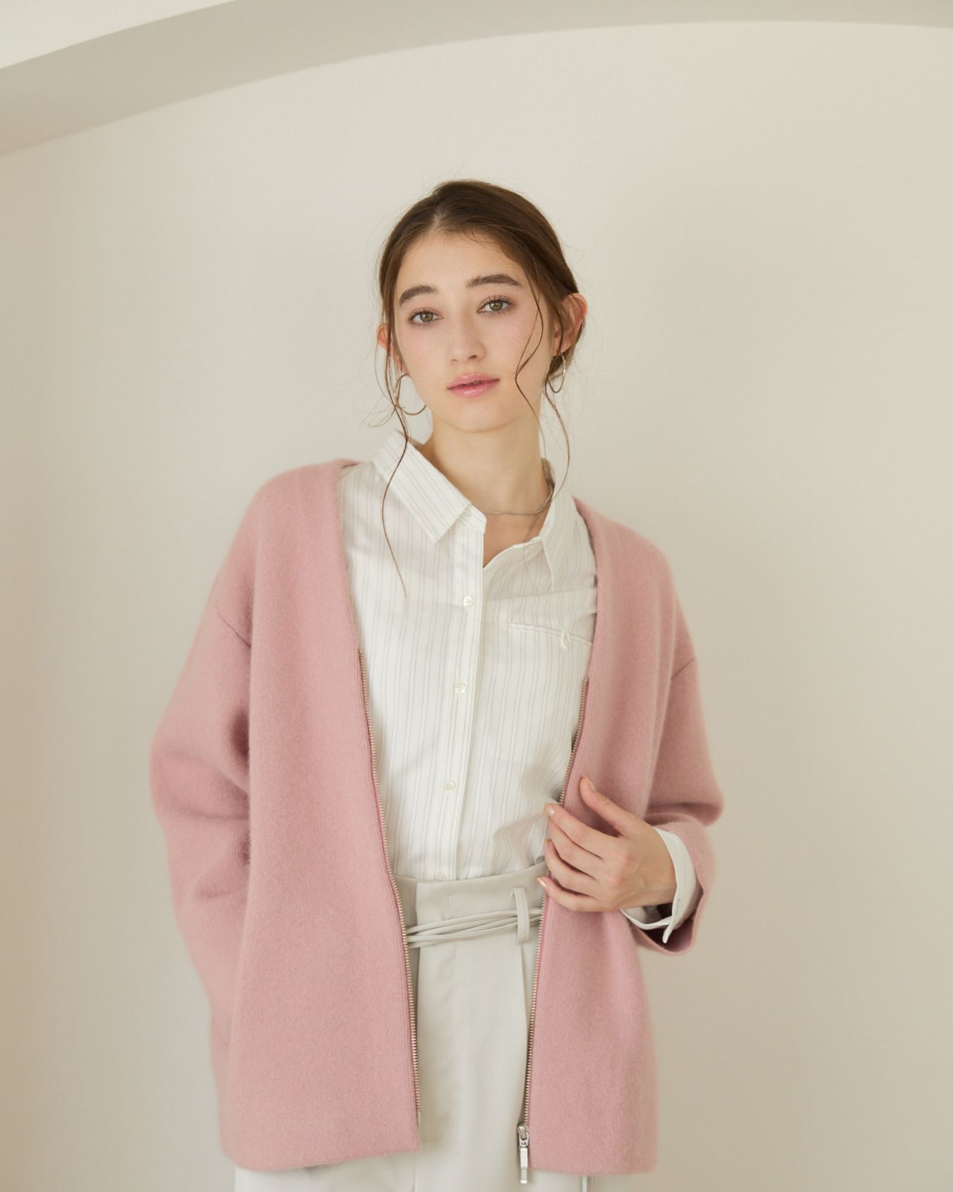 軽やかに羽織れる、上品なジップアップ"コーディガン"。 ふんわりと柔らかなラクーン混素材が、優しい着心地を叶えます。 クリーンなVネックデザインで、どんなインナーとも相性抜群。 ラクーンの中でも細い糸を使用し、毛吹き感はありつつもきれいめな印象で、ONスタイルにもおすすめ。