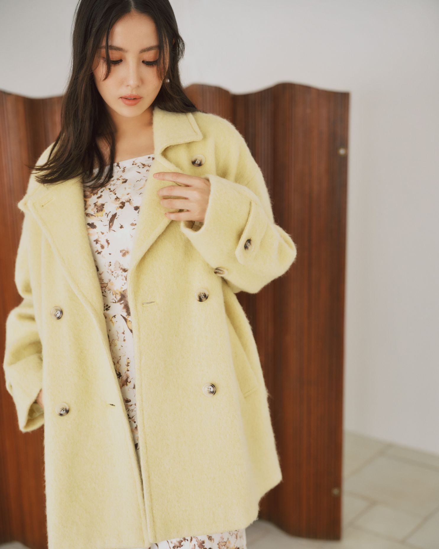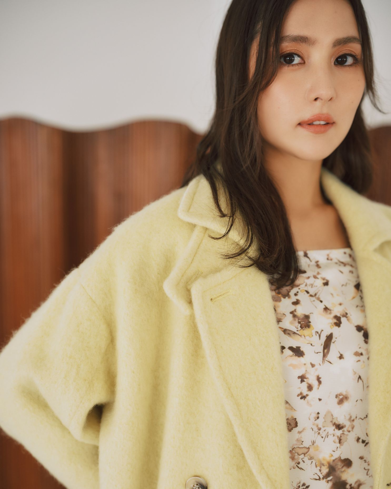 街に映えるライムイエローとワンピースのまろやかなイエローを合わせて、秋冬の華やかなカラーコーデに