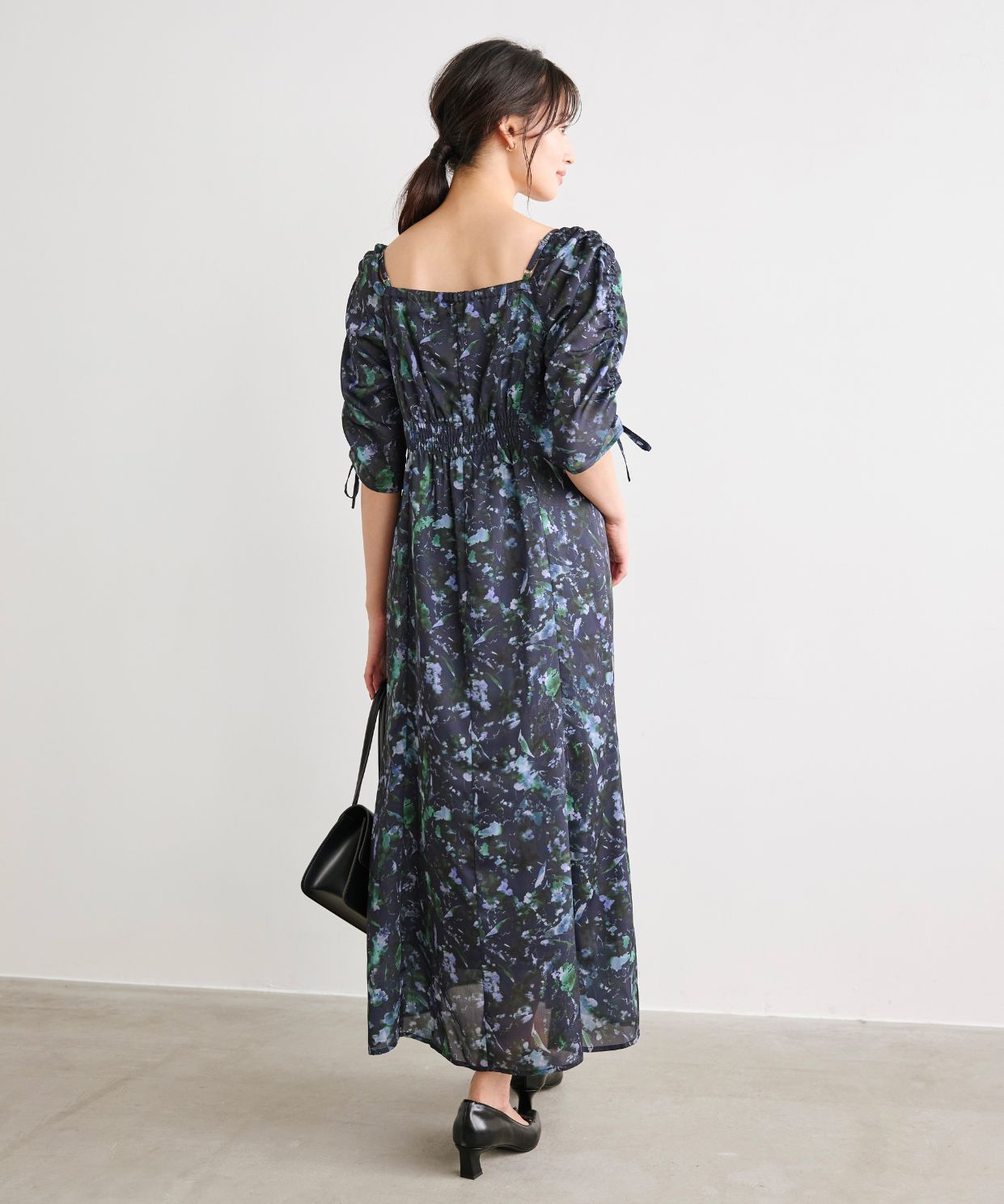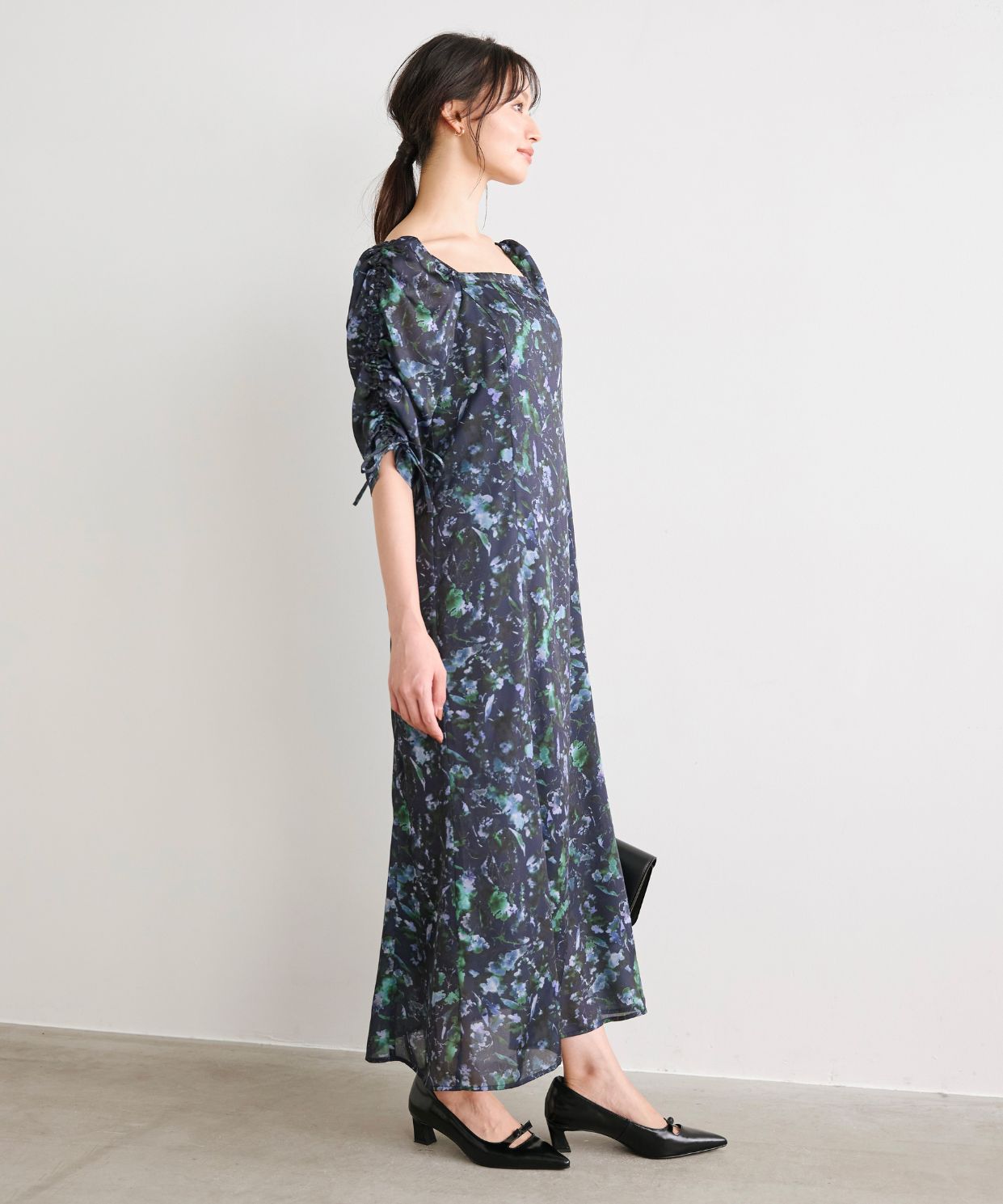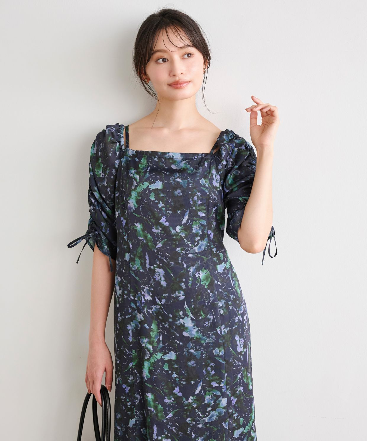 着用アイテム ぼかしフラワープリント袖ドロストワンピース ¥26,400 SIZE:38 リボンベルトパンプス ¥18,700 SIZE:38 横長ボストンバッグ ¥13,200 SIZE:00 ※着用商品以外はスタッフの私物になります