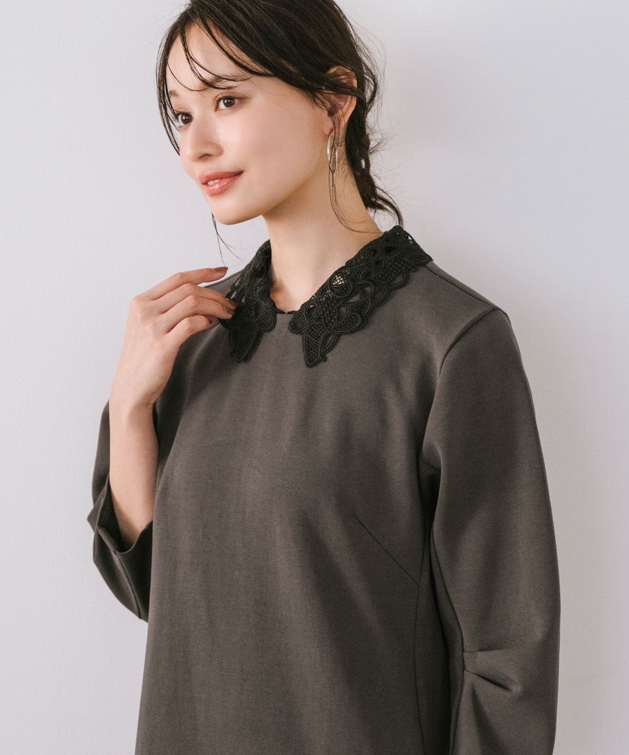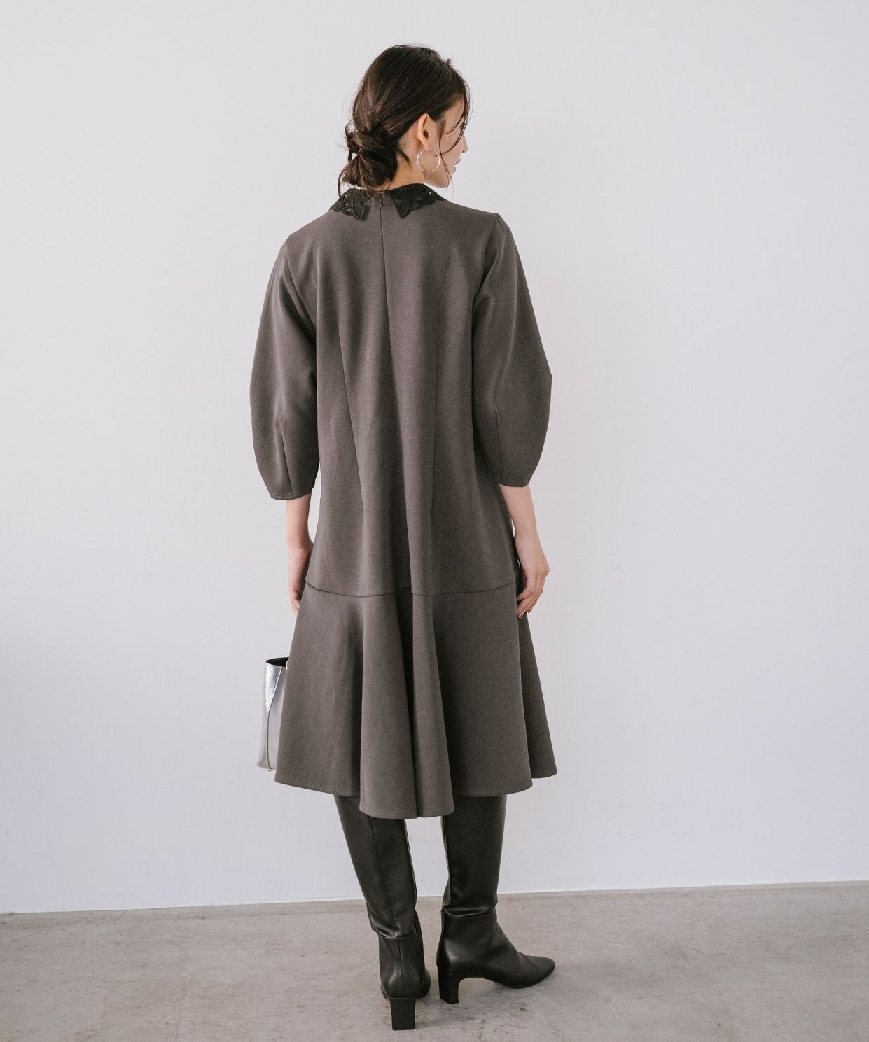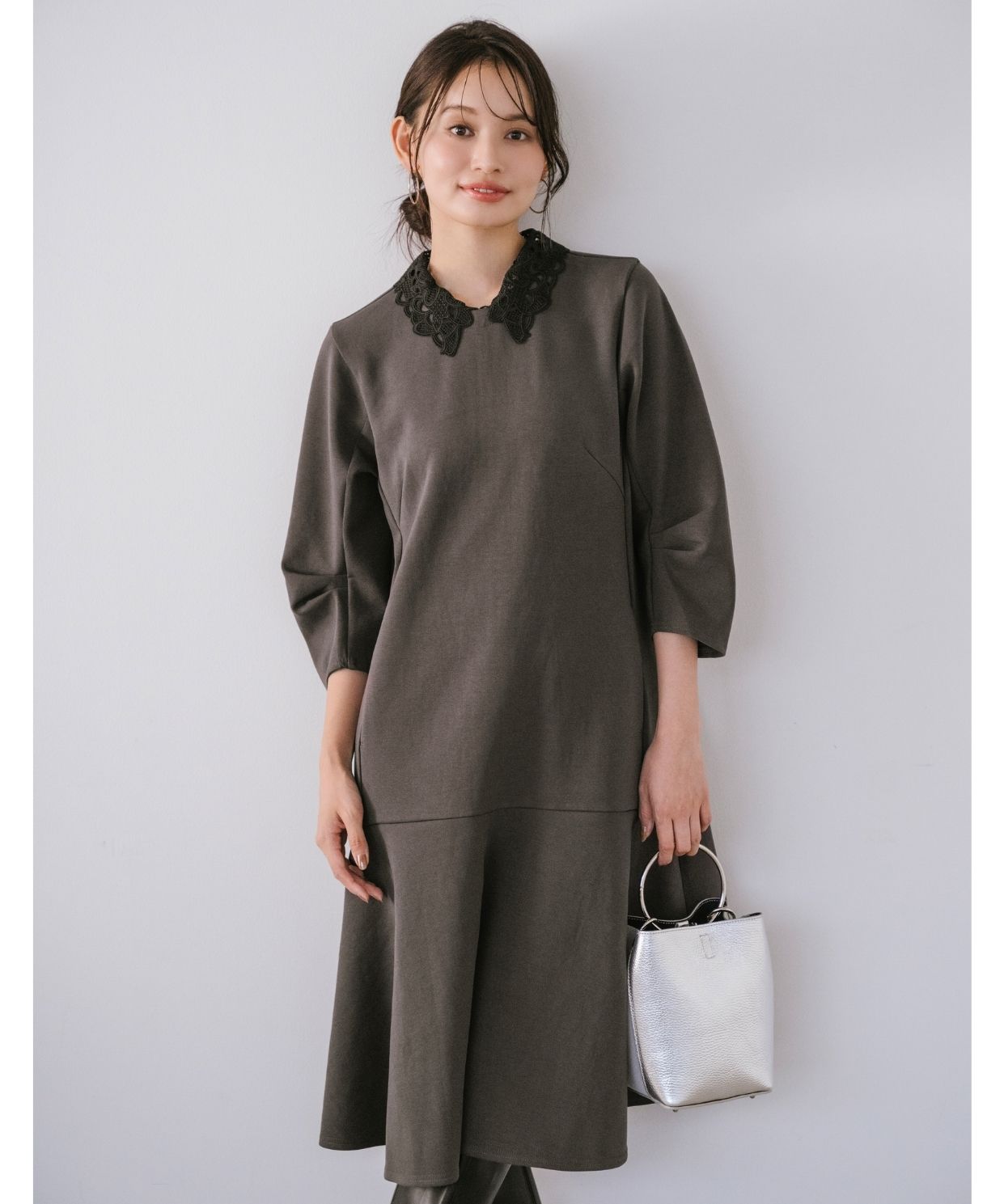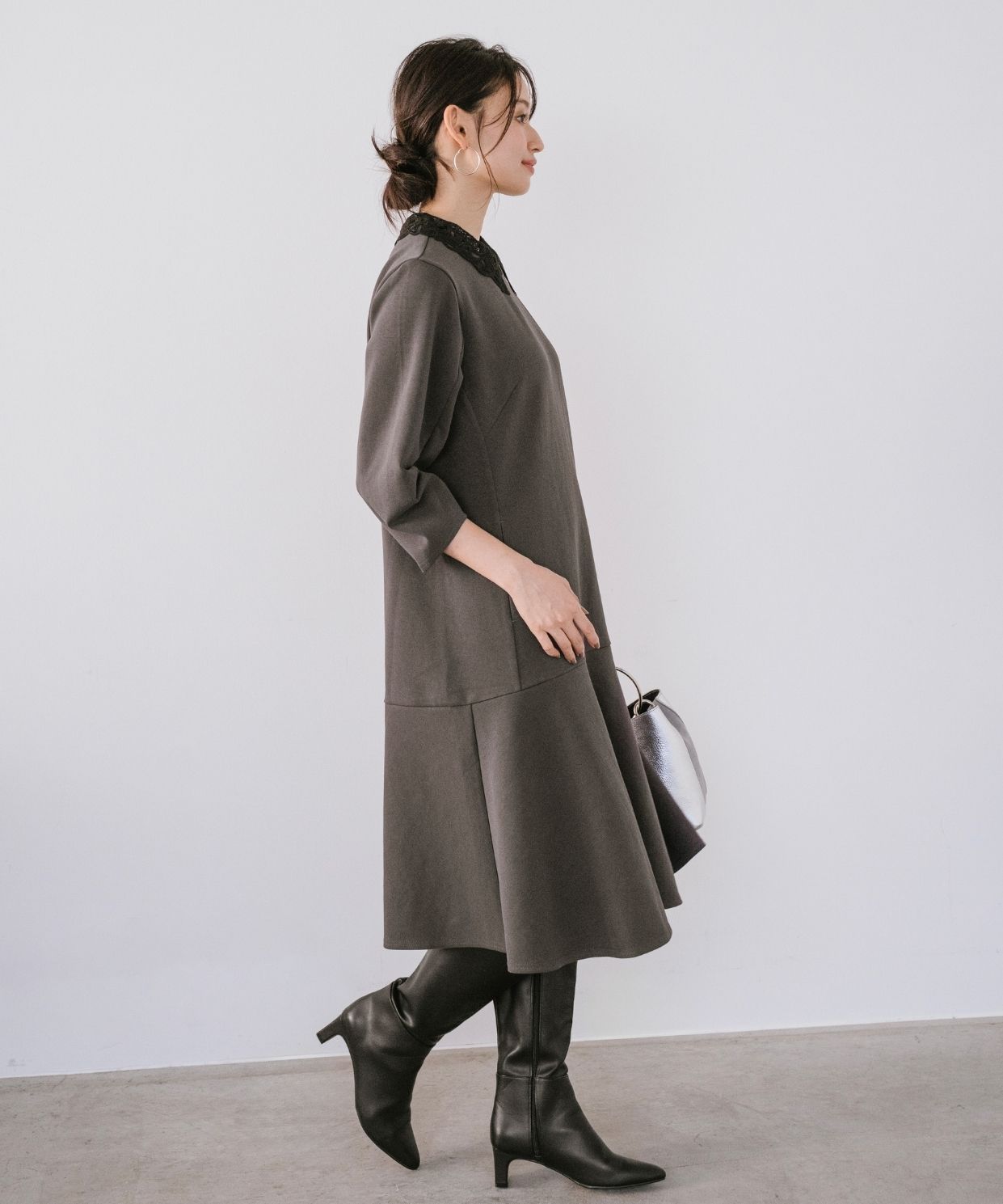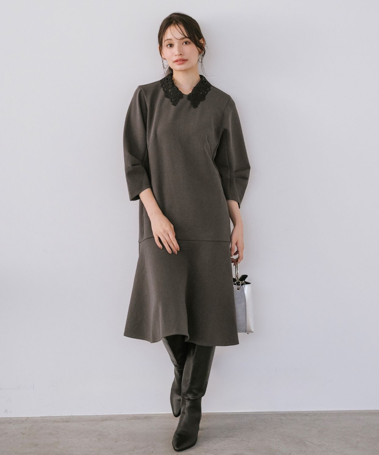 着用アイテム 取り外し刺繍衿ミニワンピース ¥24,200 SIZE:38 【AULENTTI】リングハンドルレザーバッグ (Stola.別注色有り) ¥19,800 SIZE:00 ※着用商品以外はスタッフの私物になります
