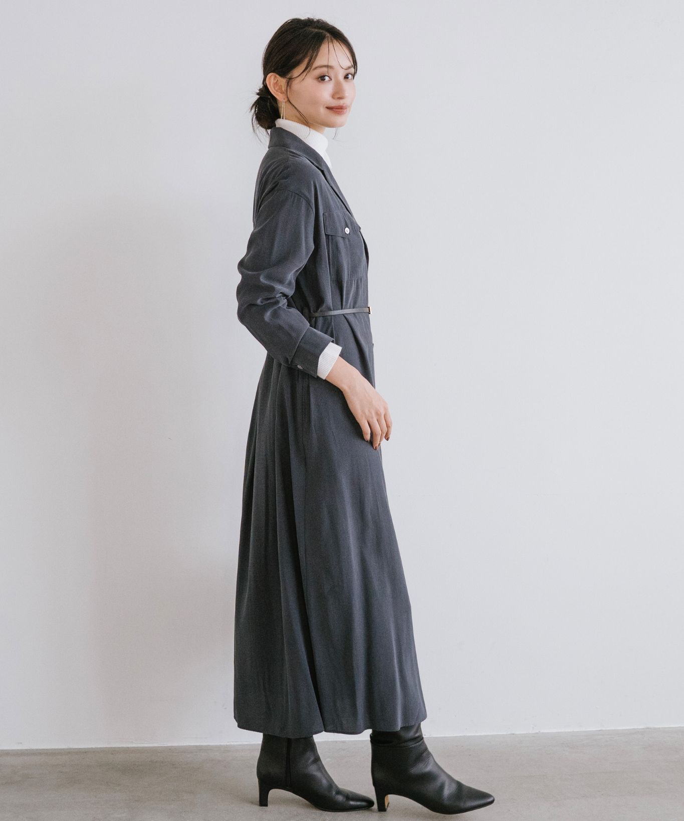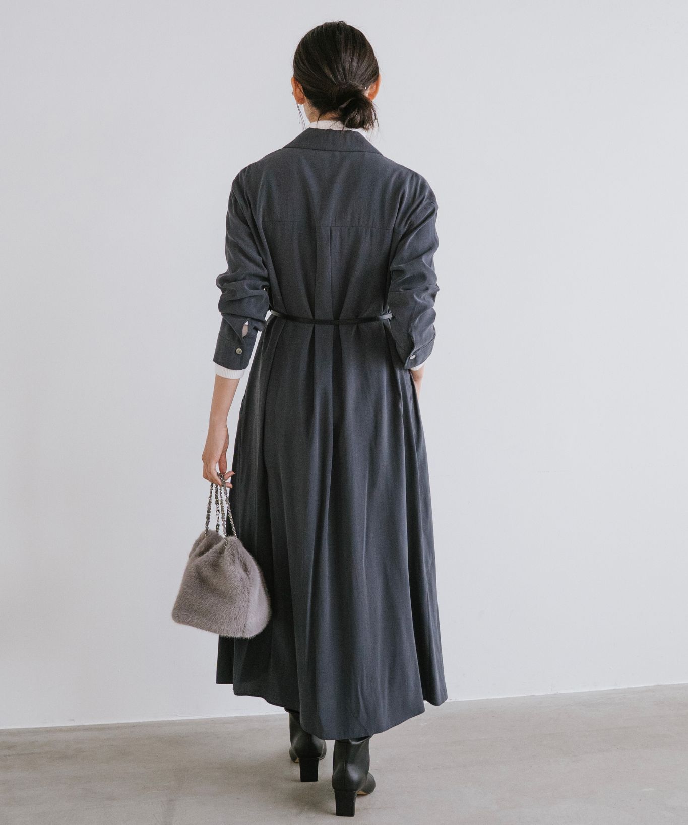 着用アイテム Vネックリバーコート ¥53,900 SIZE:38 【追加】フィブリル素材シャツワンピース ¥26,400 SIZE:38 タートルネックニットプルオーバー ¥14,300 SIZE:38 フェイクファーBAG ¥15,400 SIZE:00 ※着用商品以外はスタッフの私物になります