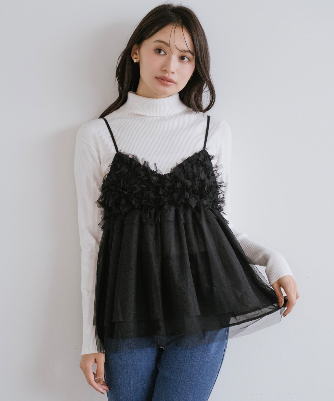 着用アイテム チュールシャーリングキャミカットソーチュニック ¥12,100 SIZE:38 タートルネックニットプルオーバー ¥14,300 SIZE:38 スリムストレートデニムパンツ ¥20,900 SIZE:38 リボンベルトパンプス ¥18,700 SIZE:38 横長ボストンバッグ ¥13,200 SIZE:00 ※着用商品以外はスタッフの私物になります