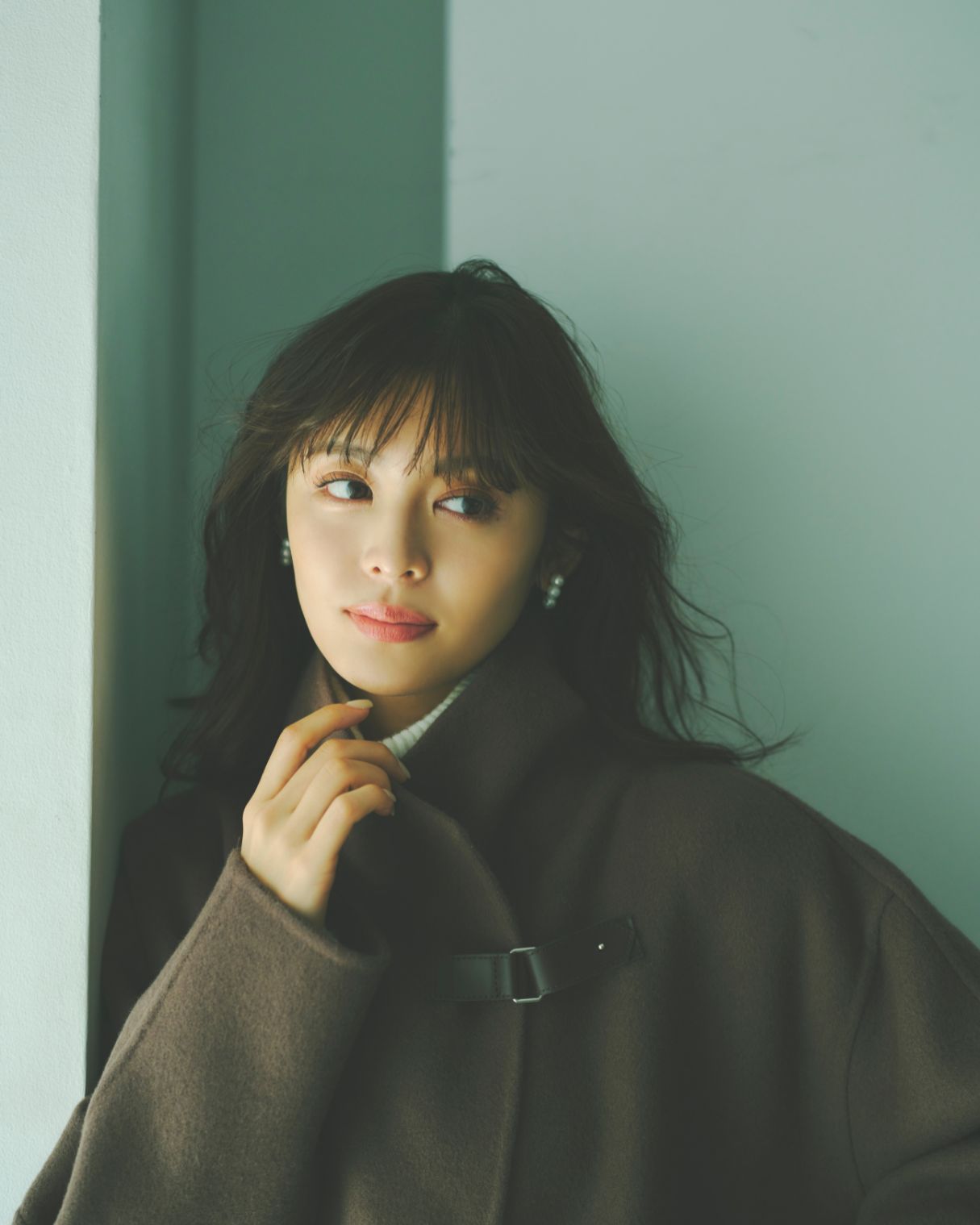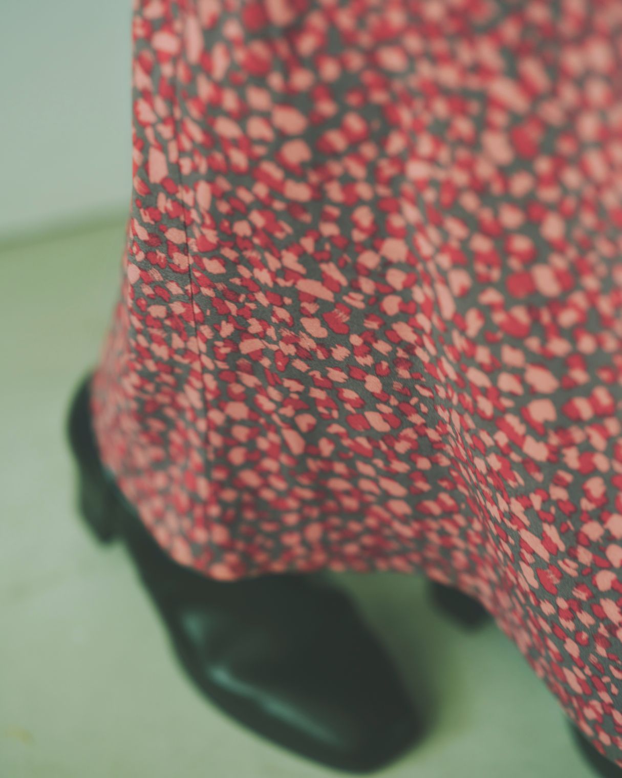 スパンコールをあしらったニットと柄スカートに、軽やかなリバーコートをさらり。 絵になる着こなしが気分を上げてくれる。