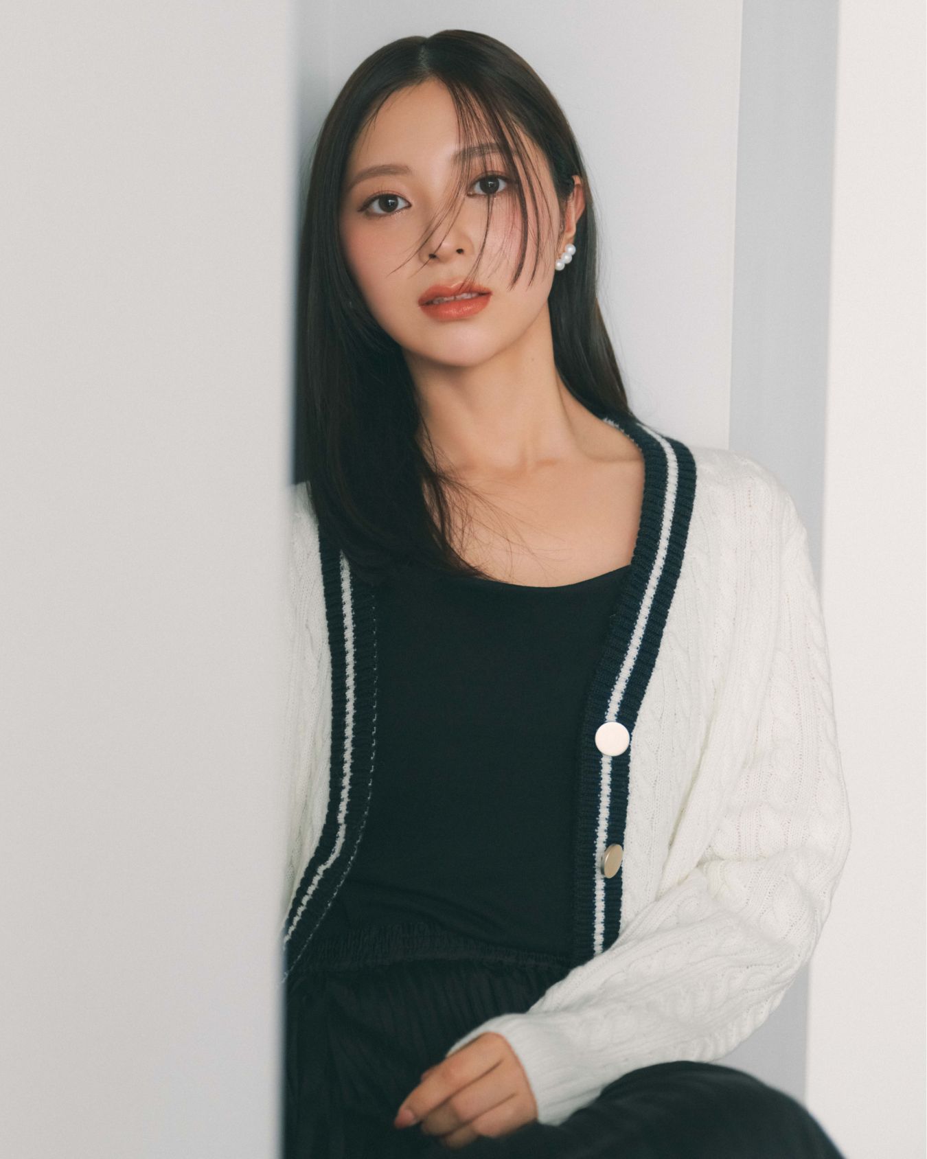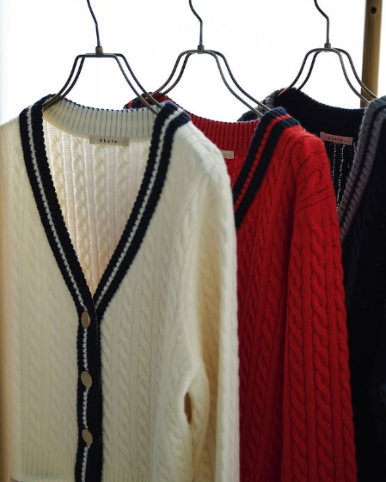 モノトーンに表情をプラスする立体感とプレッピーな配色がポイント