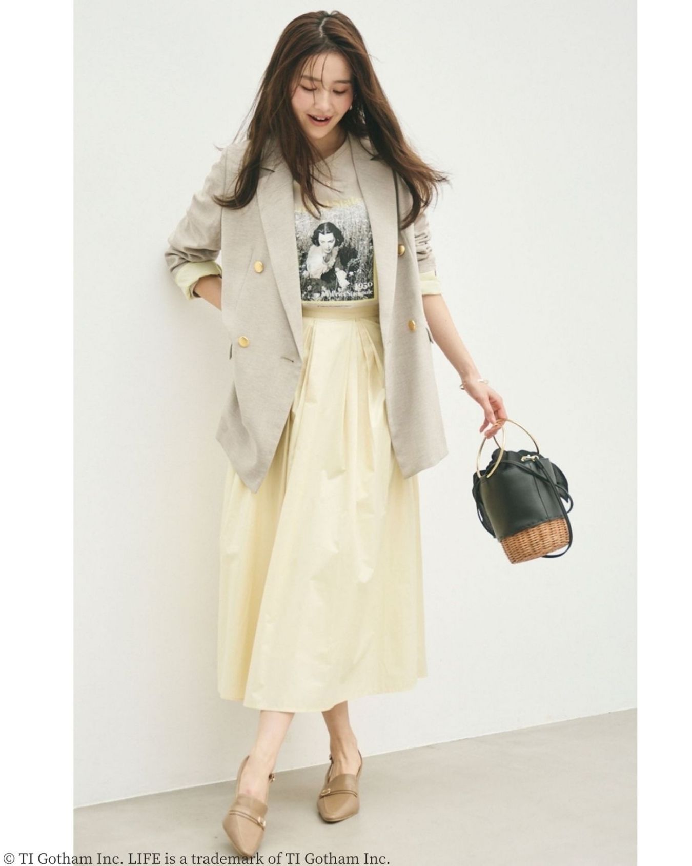 注目カラーは“イエロー”。 肌馴染みの良い淡いトーンが人気で、華やぎを添えながら品よくまとまります。 トップスやスカート、袖口や小物にひとさじ加えるだけで、 スタイリングがぐっと新鮮にアップデート。
