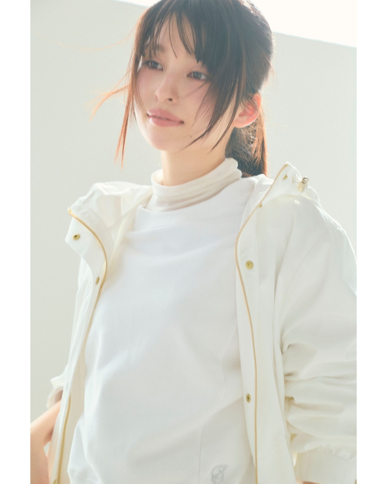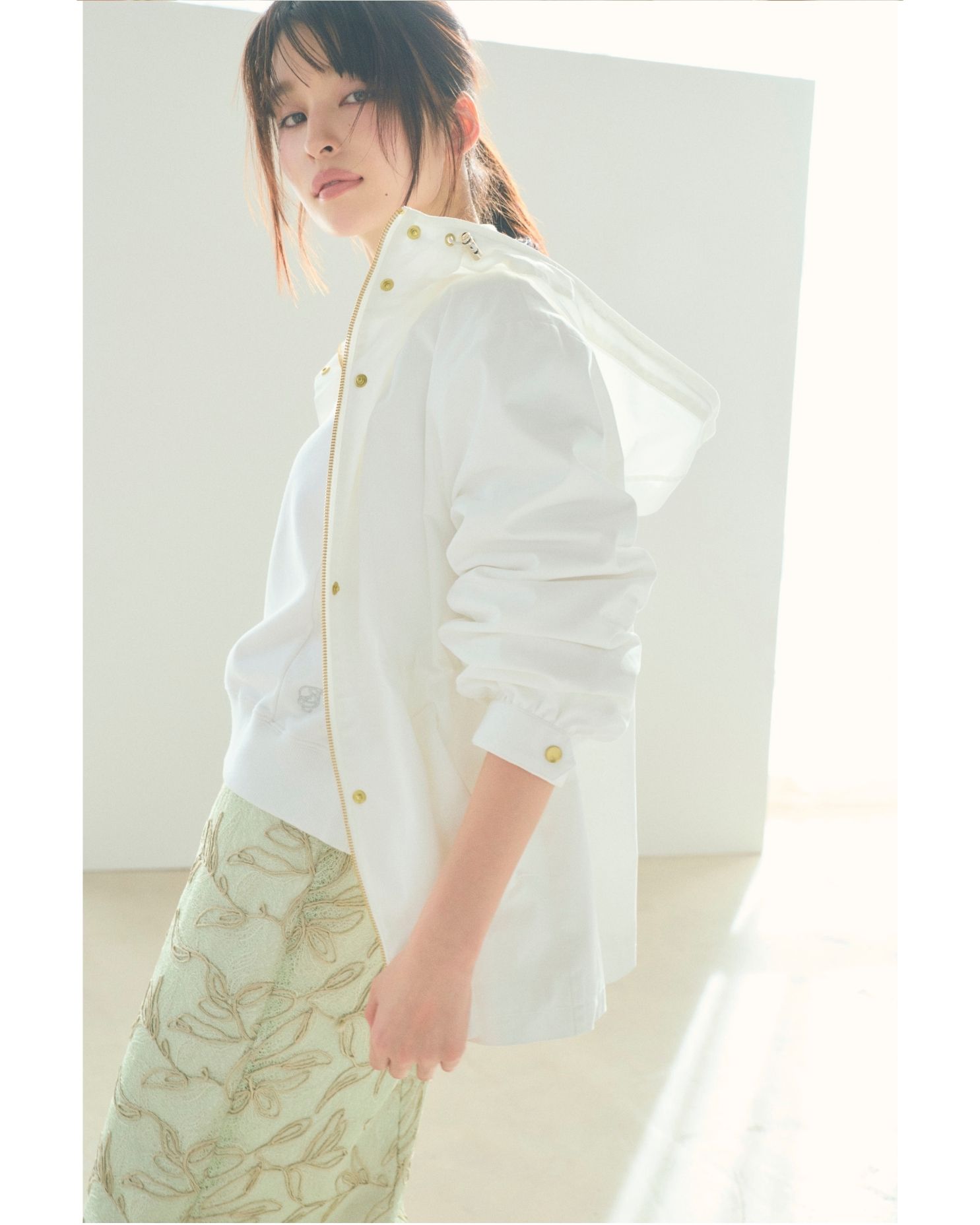 どんなアイテムも受け止めてくれる白なら、いつもと違う組み合わせにも挑戦しやすい。 装飾的なスカートを、媚びない女っぽさに傾けて。