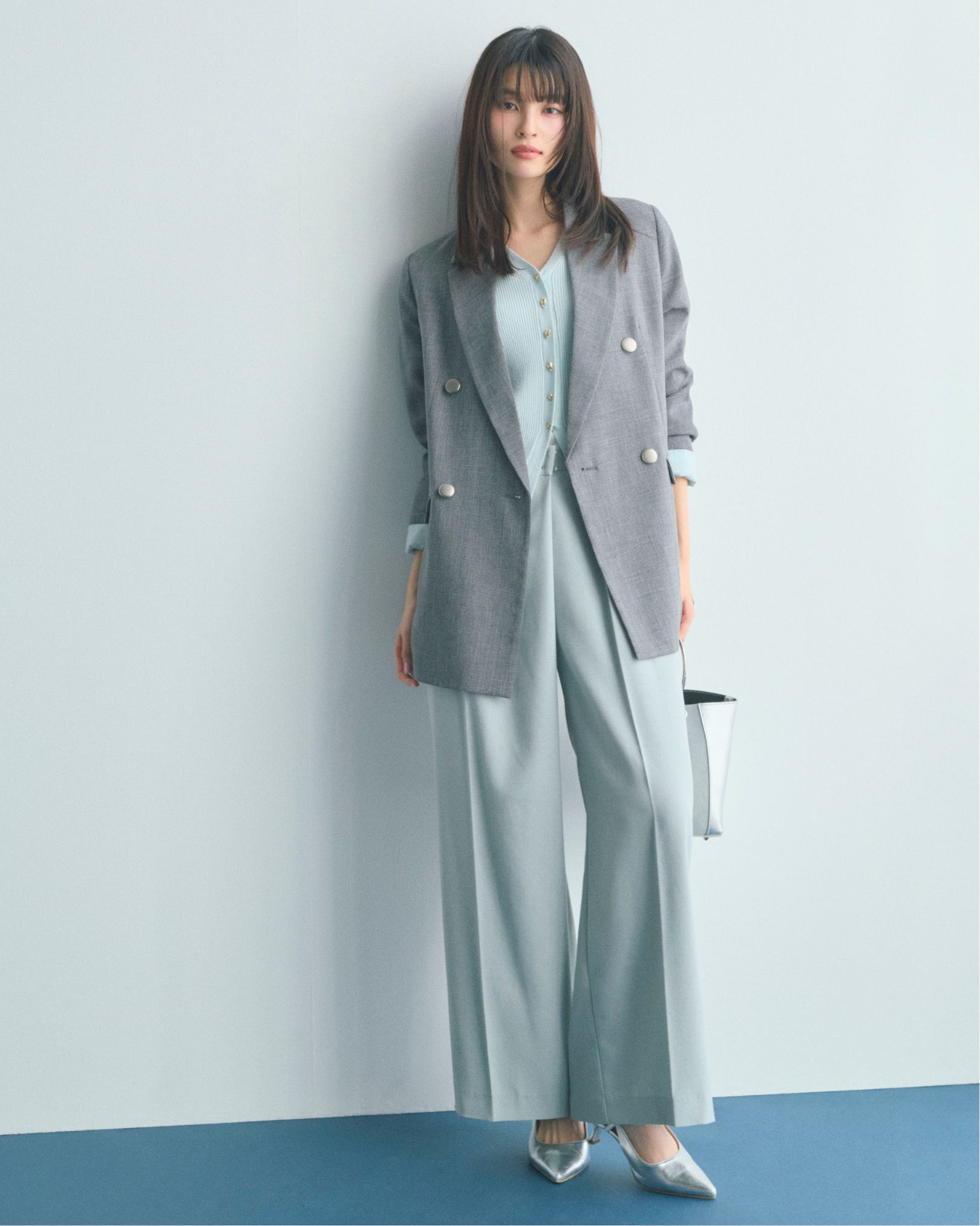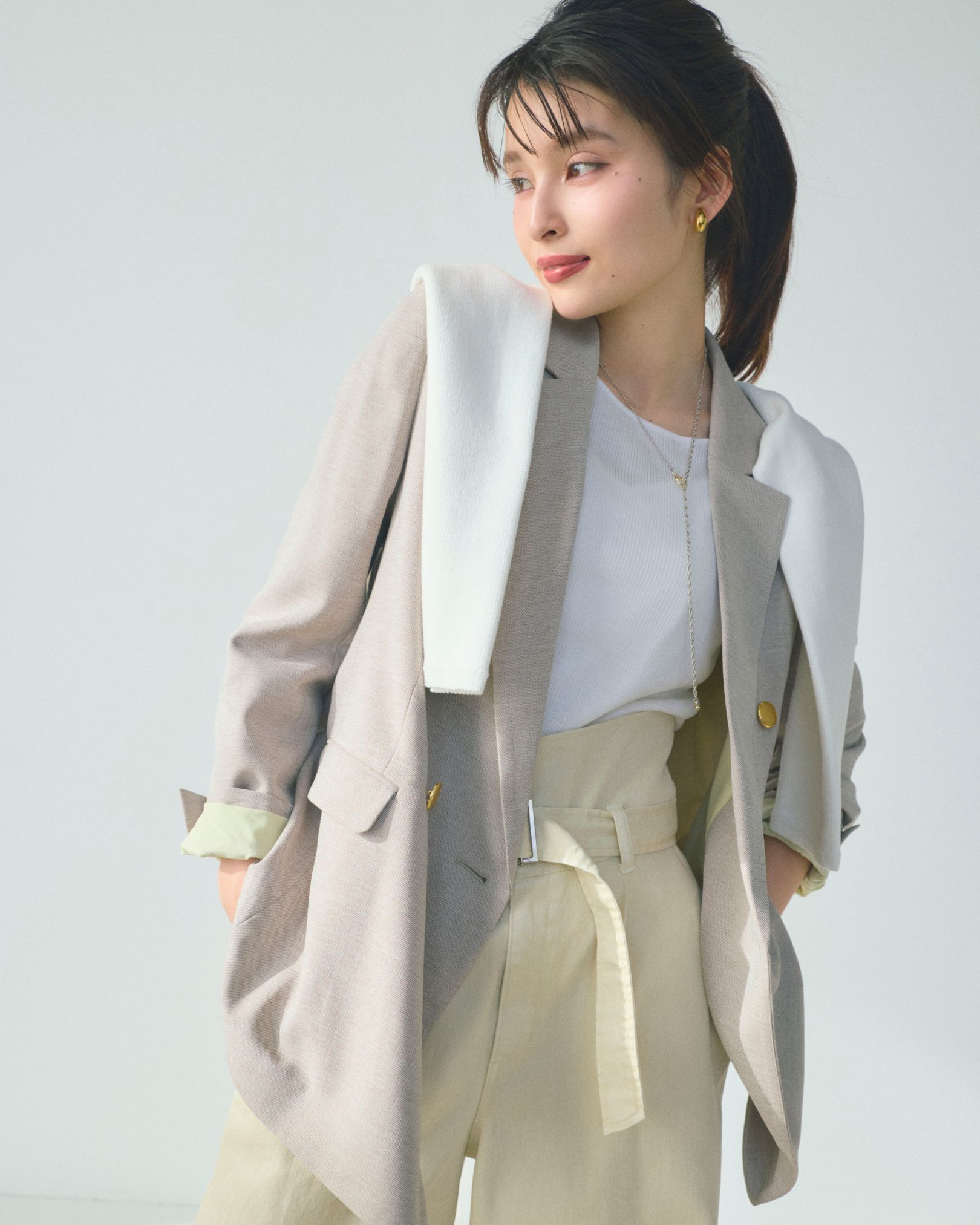ワードローブに必要不可欠なダブルジャケット。 きちんと感はありながら、抜け感のあるシルエット・程よくアクセントになるメタルボタンで、ON/OFFどちらでも活躍する1着。 ベーシックに着られるベージュ,グレー,ネイビーの色展開に、軽やかなカラーの裏地を合わせました。 袖を折り返すと綺麗色が覗くデザインは、裏地と合わせたカラーコーデもおすすめです。