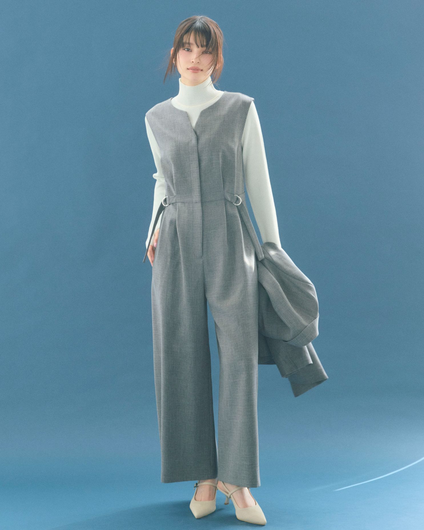 ベーシックながら細部にこだわりを詰め込んだ、同素材のジャケット・スカート・オールインワン。 ONもOFFも活躍する、着回し力抜群のカセット服が忙しい毎日の味方。