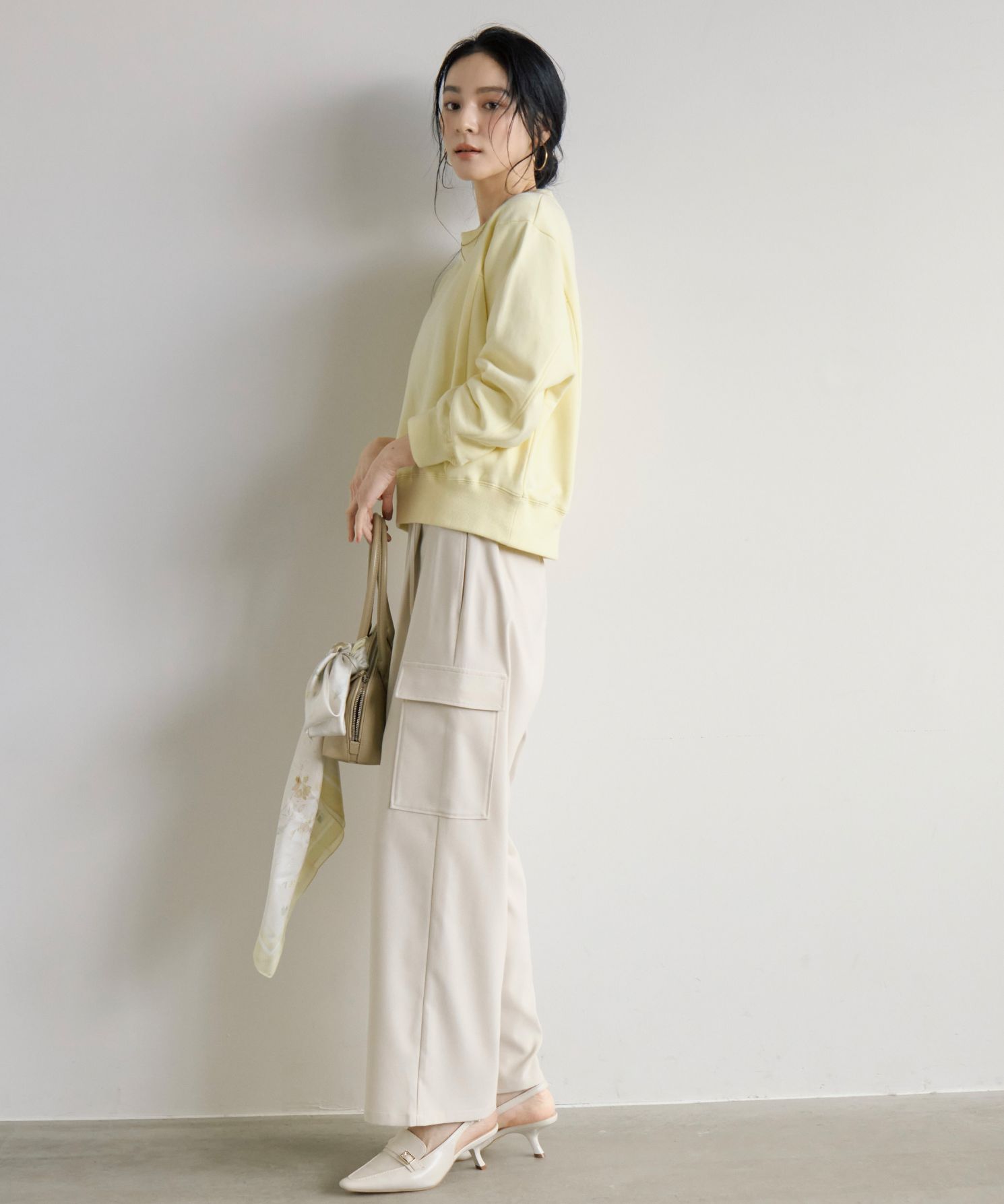 着用アイテム 【5色】変形裏毛スウェット ¥14,300 SIZE:38 きれいめカーゴパンツ ¥19,800 SIZE:38 横長ボストンバッグ ¥17,600 SIZE:00 エアリーフラワースカーフ ¥12,100 SIZE:00 ※着用商品以外はスタッフの私物になります
