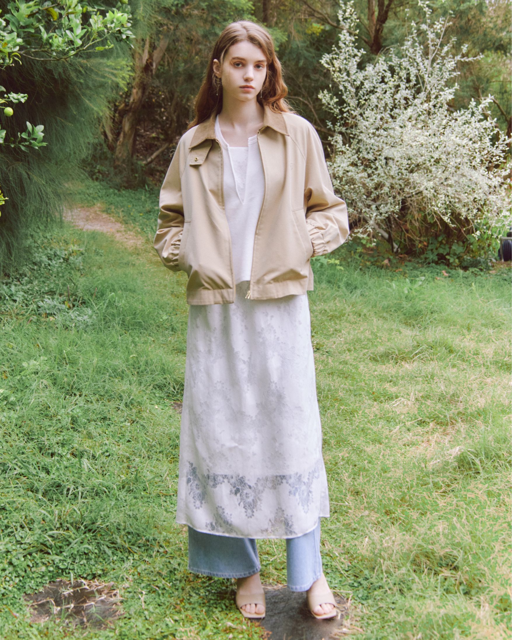 女性らしいレースにはデニムを合わせることで気負わずに楽しめる
