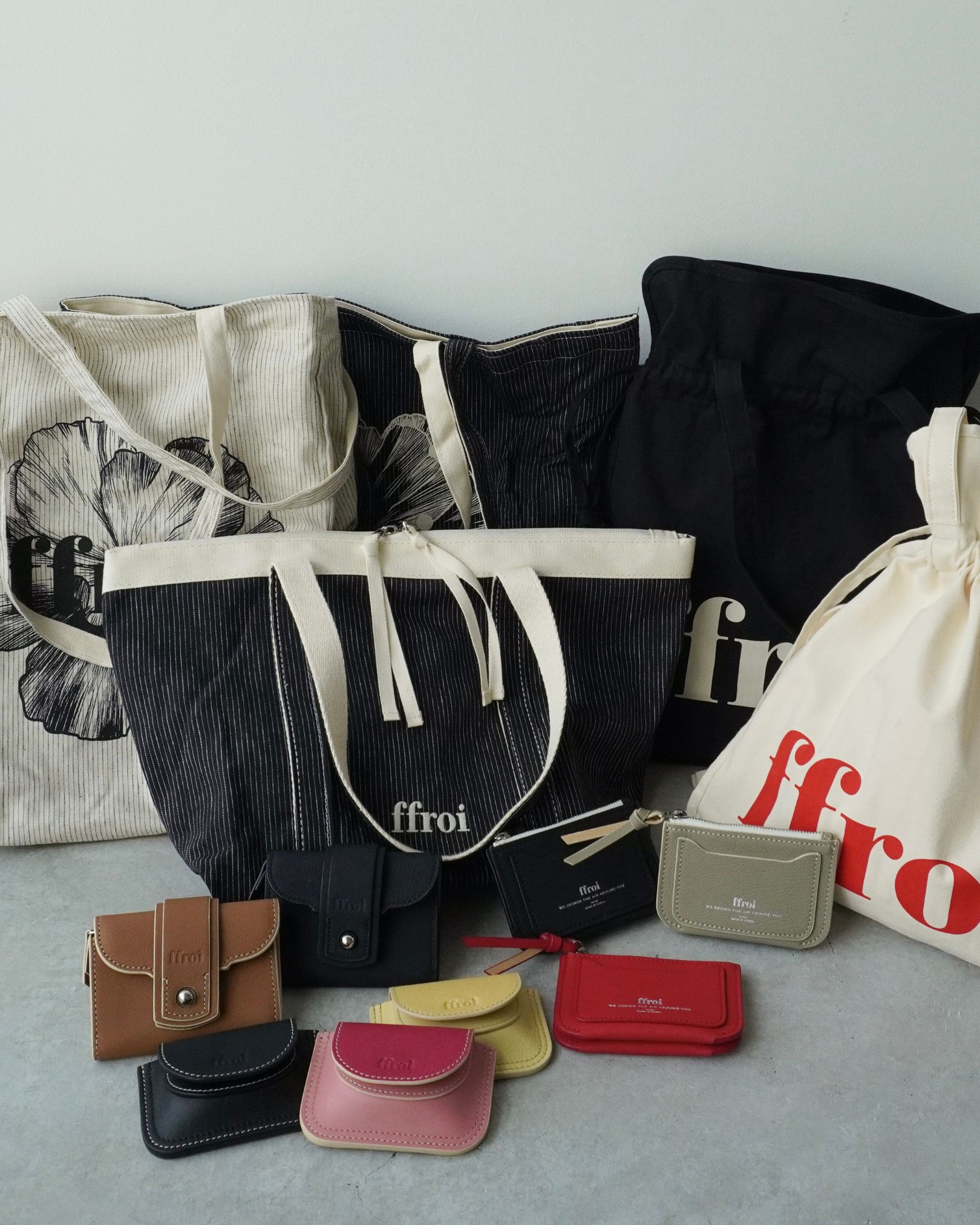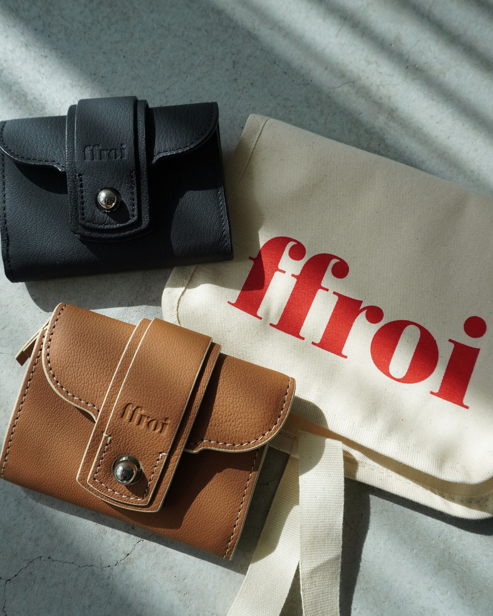 ブランドのシグネチャーアイテムである羊革の2つ折り財布、キャッチーな色展開のケースなど、レザー小物3型をラインナップ。 それぞれロゴ入りケースと共にご用意しました。