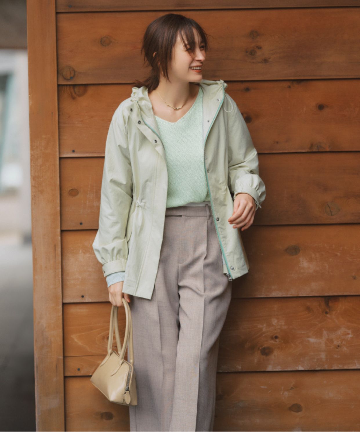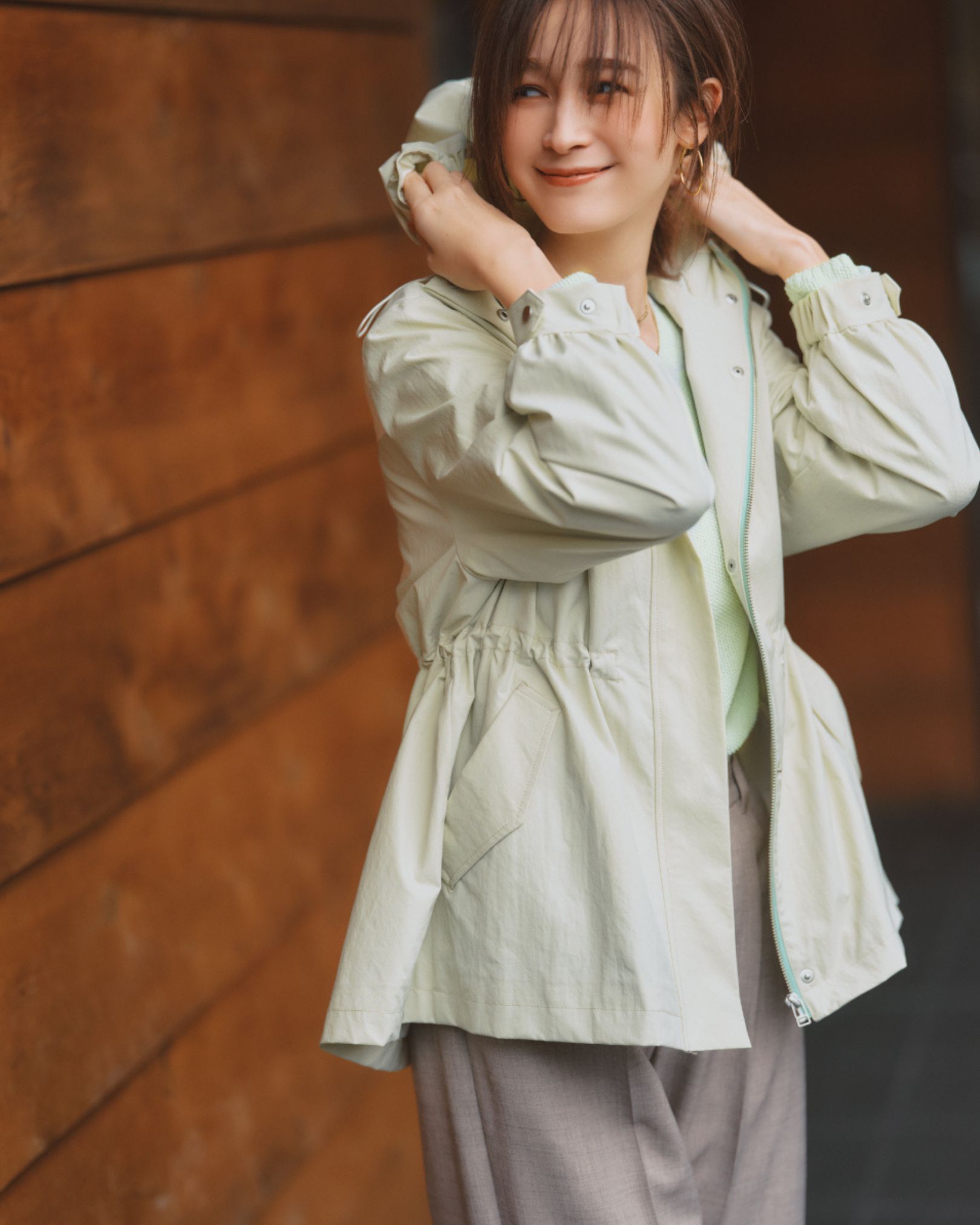 スポーティな一枚は着るだけで旬のシルエットが叶う クリーンで新鮮なライムグリーンにときめく。カラーもメタルパーツもマットな仕上げで、着こなしに浮かない控えめな上品さが絶妙。 テイストやシーンを選ばず、いつでもマルチに楽しめます。 ウエスト部分にはドローコードがついているから、絞ることでメリハリをつけるアレンジも可能です。