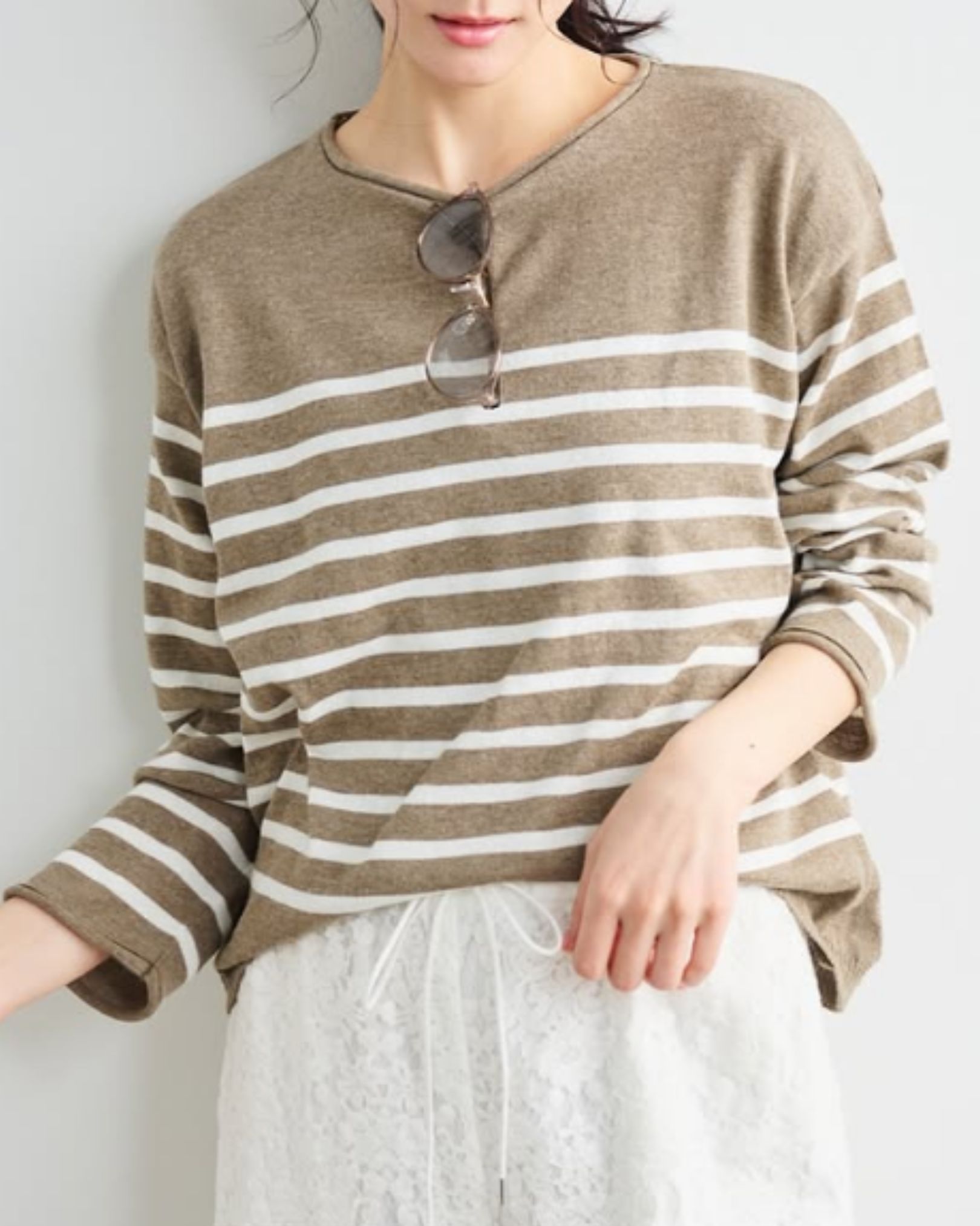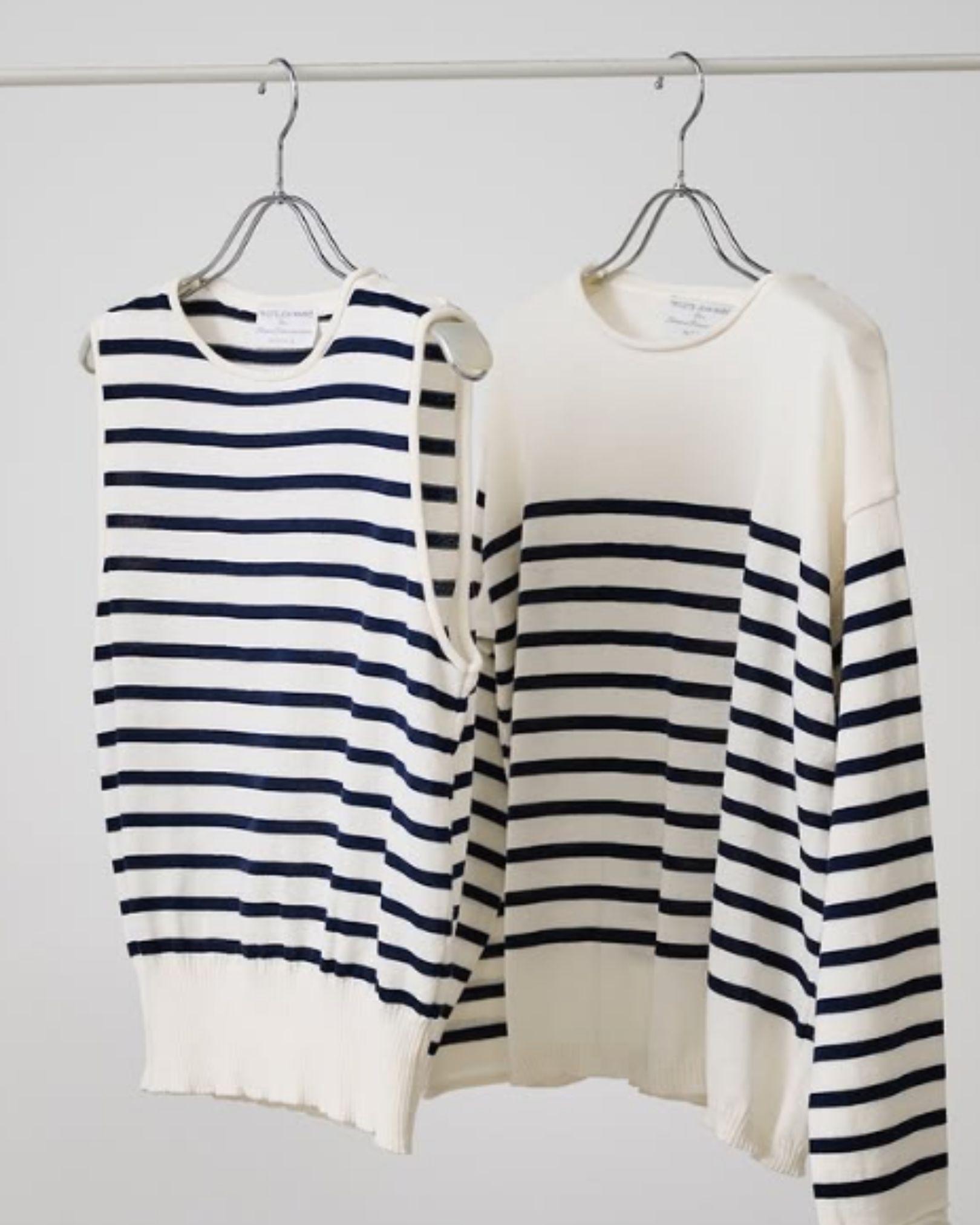 Stola.でしか手に入らない別注カラーと共にご用意しました。 -TORICOTS JEAN MARC- トリコット ジーン マルクは、フランスのレディースニット専門のOEM工場からスタートしたのち、1980年に社名を掲げて設立したブランドです。 100%フランスメイドの本格的なニットをコンセプトに、親子3代にわたって受け継いだノウハウで良質で洗練されたデザインを手掛けています。 コットンボーダーニットプルオーバー ¥14,300 ・Off×Brown ・Off×Navy ・Beige×Off ★Stola.別注カラー さらっとした着心地のコットン&ポリエステルMIX素材。 袖端や衿元のくるっと丸まったデザインがさりげないポイントに。 同素材のノースリーブもご用意しました。