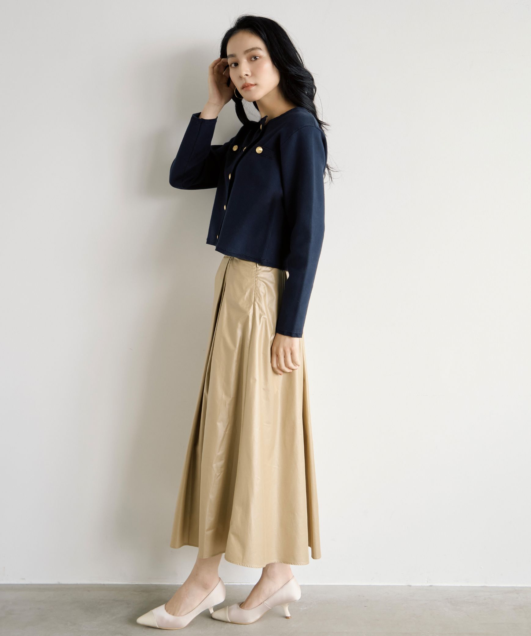 着用アイテム スムース編みメタル釦ニットカーディガン ¥17,600 SIZE:38 チンツ加工ボリュームスカート ¥18,700 SIZE:38 トゥーキャップパンプス ¥18,700 SIZE:38 横長ボストンバッグ ¥17,600 SIZE:00 ※着用商品以外はスタッフの私物になります