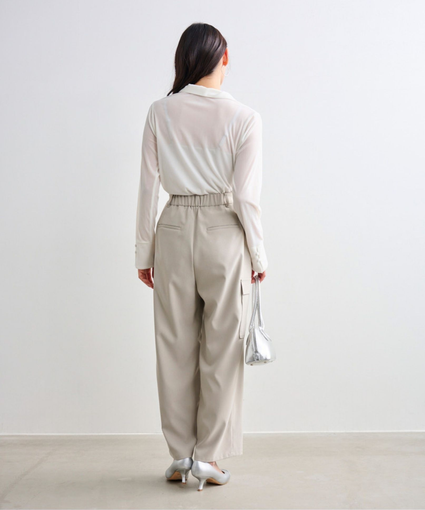 着用アイテム シアーベロアシャツカットソープルオーバー ¥14,300 SIZE:38 きれいめカーゴパンツ ¥19,800 SIZE:38 トゥーキャップパンプス ¥18,700 SIZE:38 横長ボストンバッグ ¥17,600 SIZE:00 ※着用商品以外はスタッフの私物になります