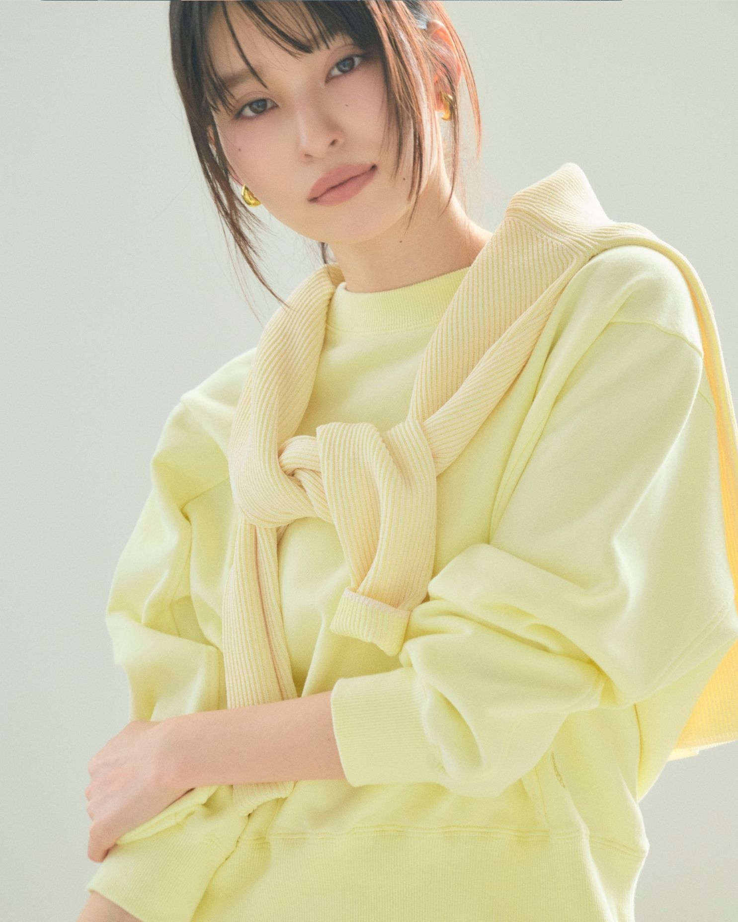 ニットアンサンブルのインナーは、すっきり抜け感のあるスクエアネックとクルーネックの2WAY仕様。