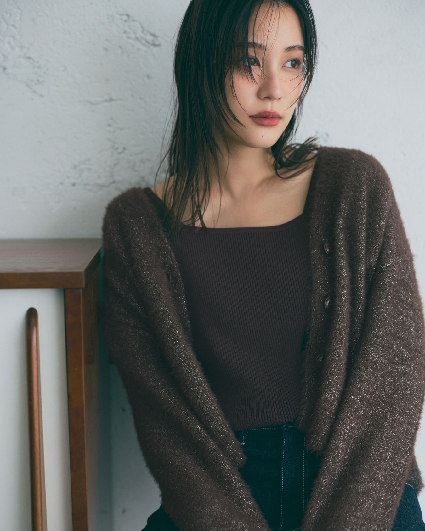 ざっくりとした編み地とふくらみのある素材感が今にぴったりなカーディガン。