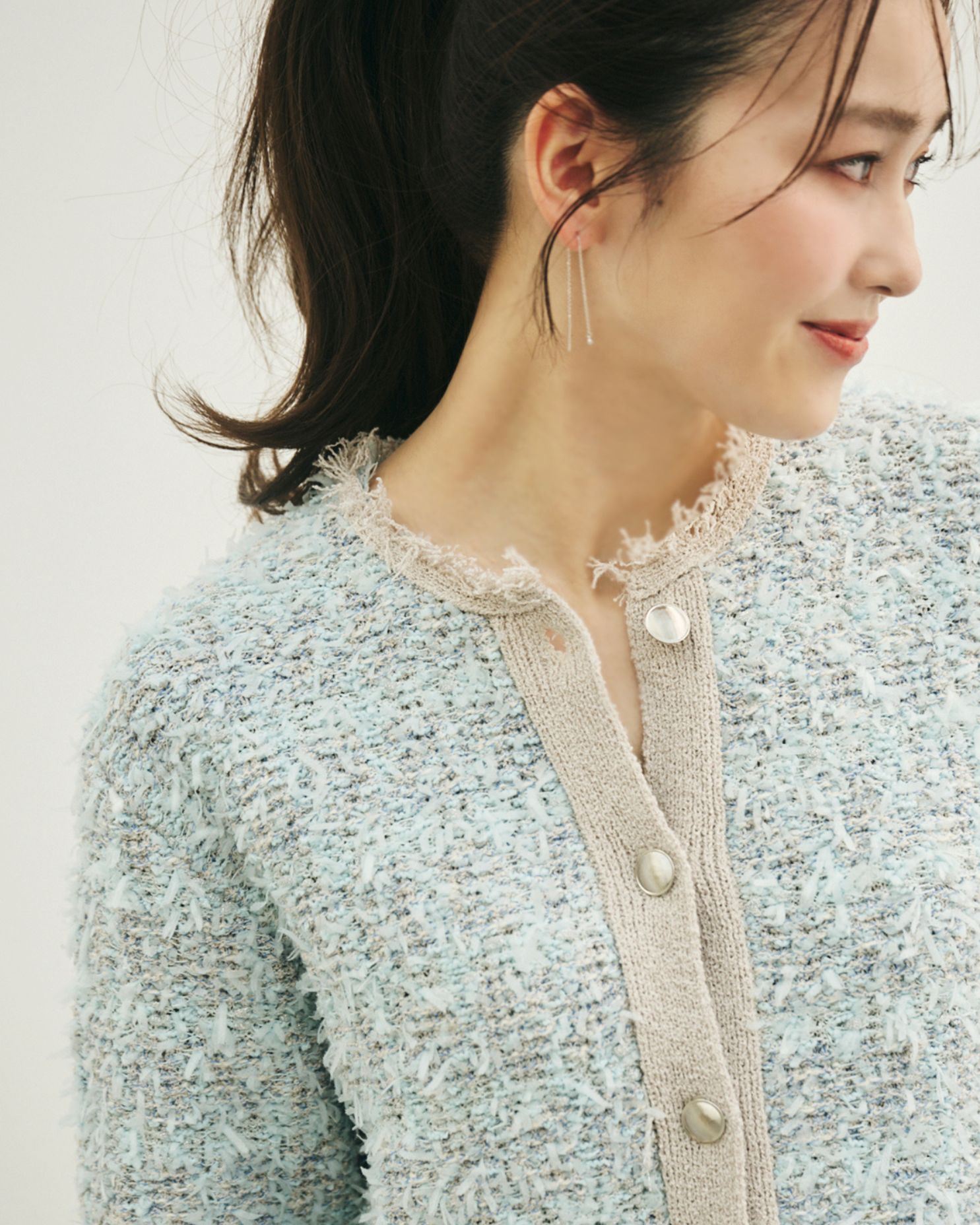 思わず触れたくなる、ふわふわ素材のニットアンサンブル。