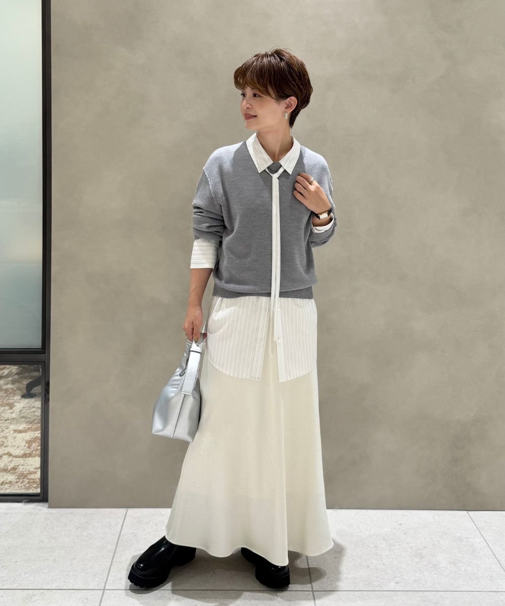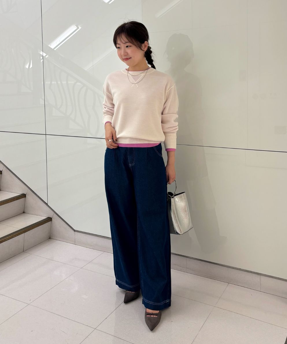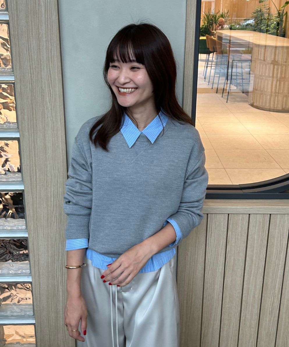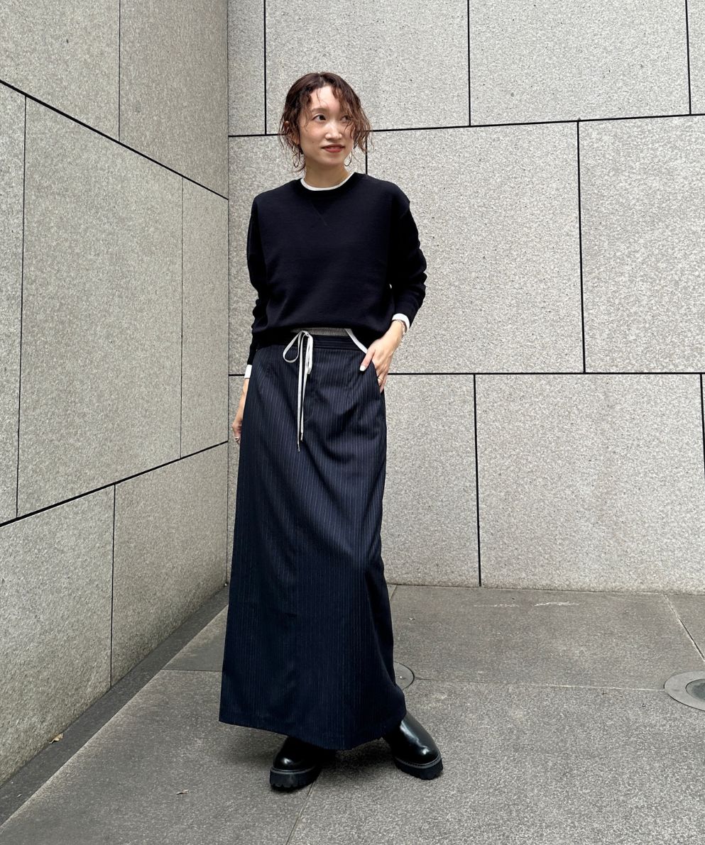 スウェットライクなディティールですが、ニット素材なのでスウェットよりも上品な着こなしに。