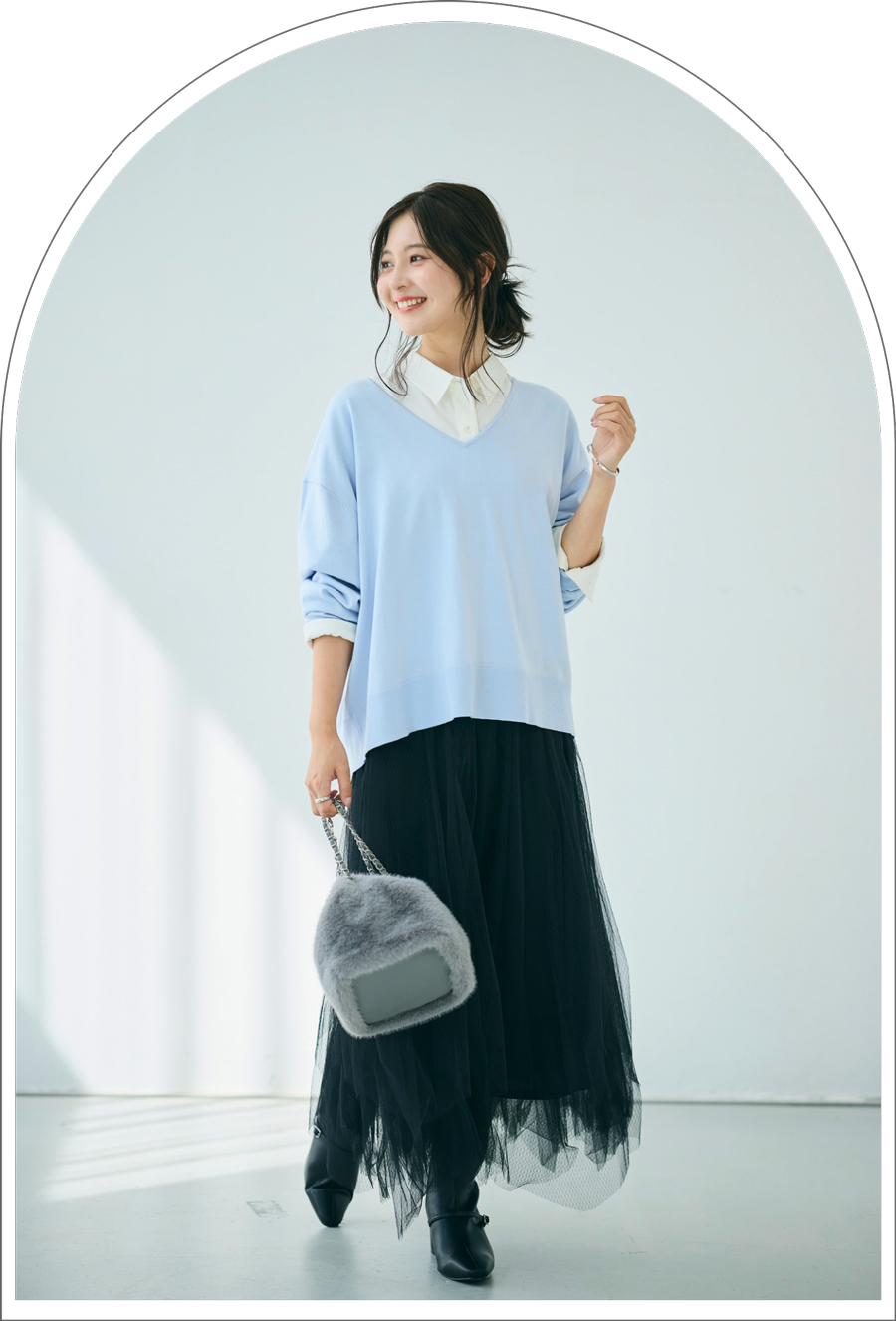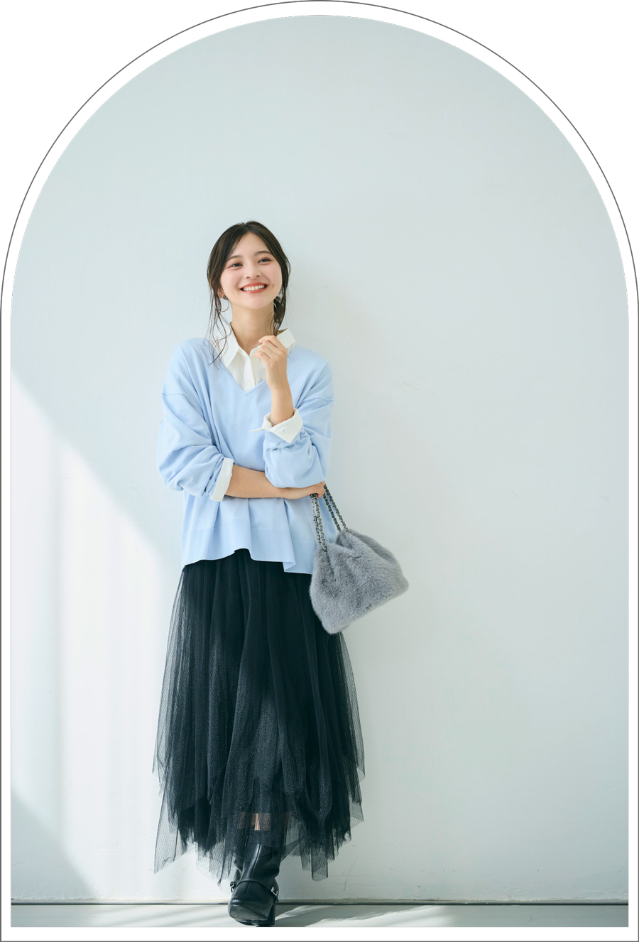柔らかなブルーが秋冬の装いを優しく彩ります。