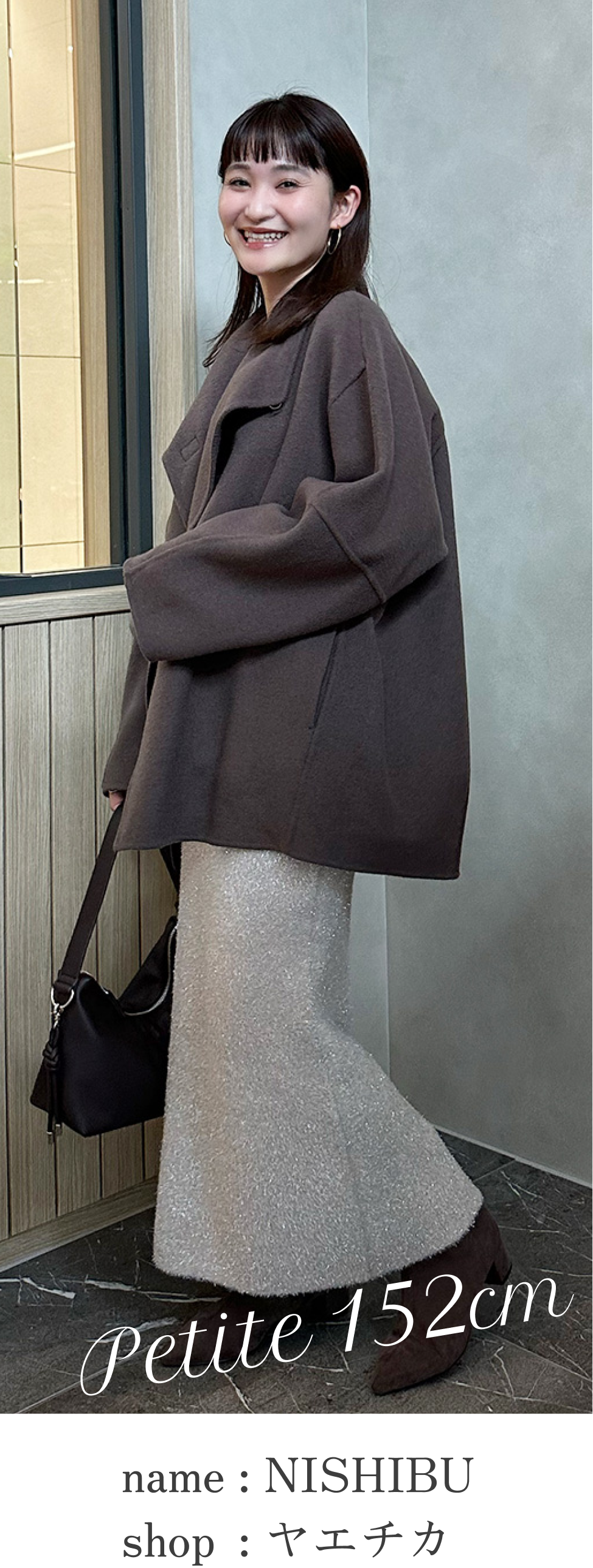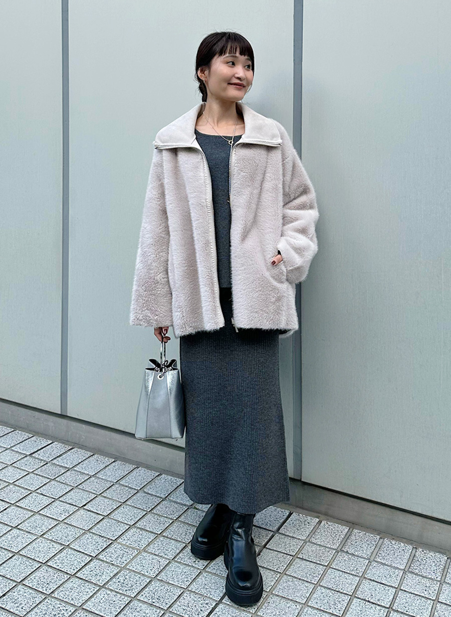 小柄さんにもバランスよく映える着こなしです。
