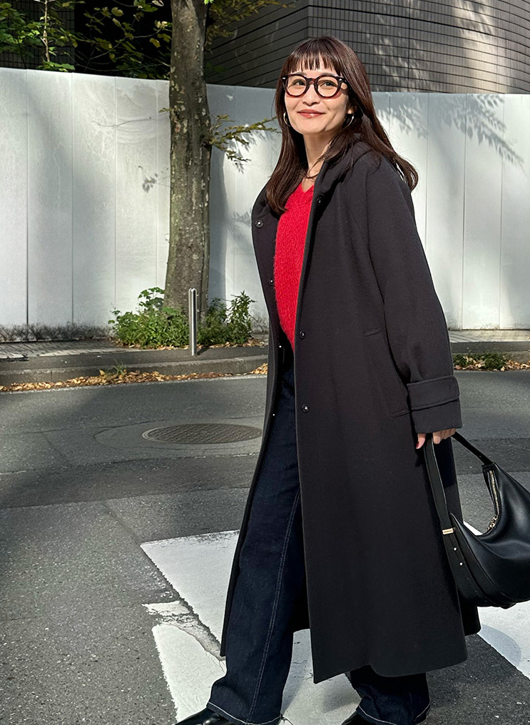 ロングコートは重たく見えがち…