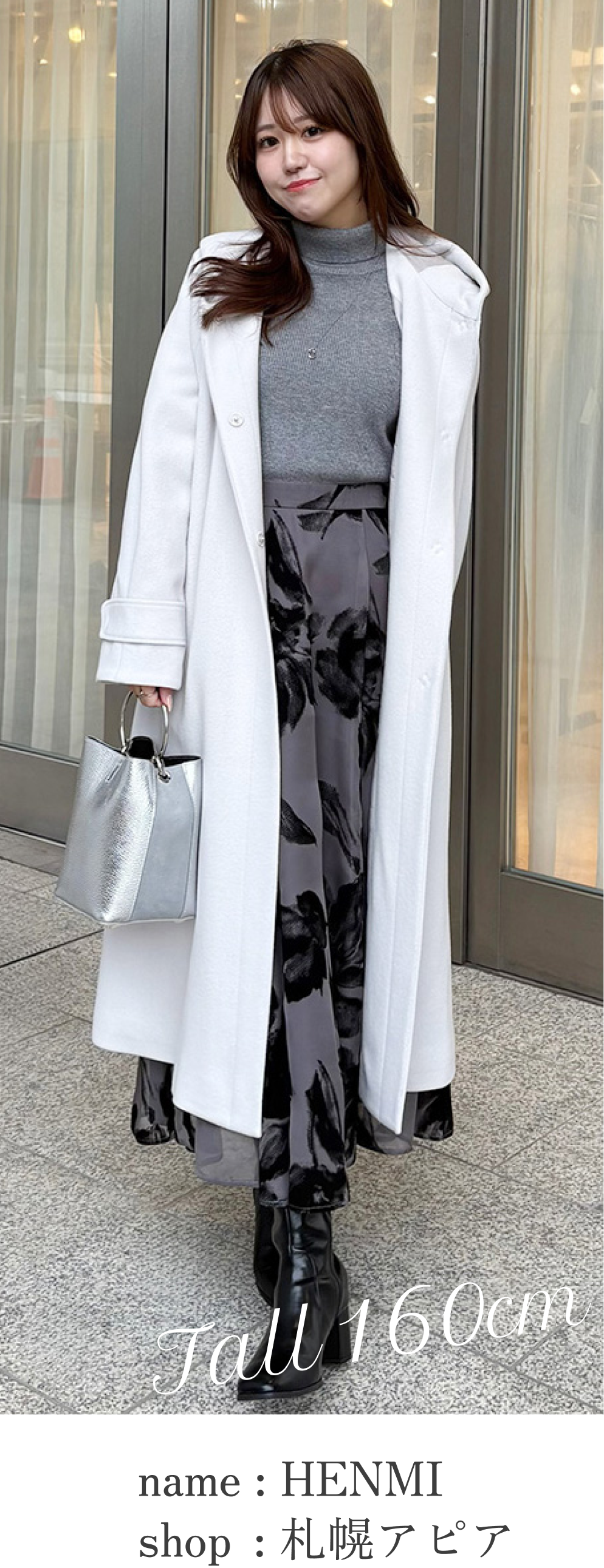 今回はスタッフが身長別にアウターを着こなし、