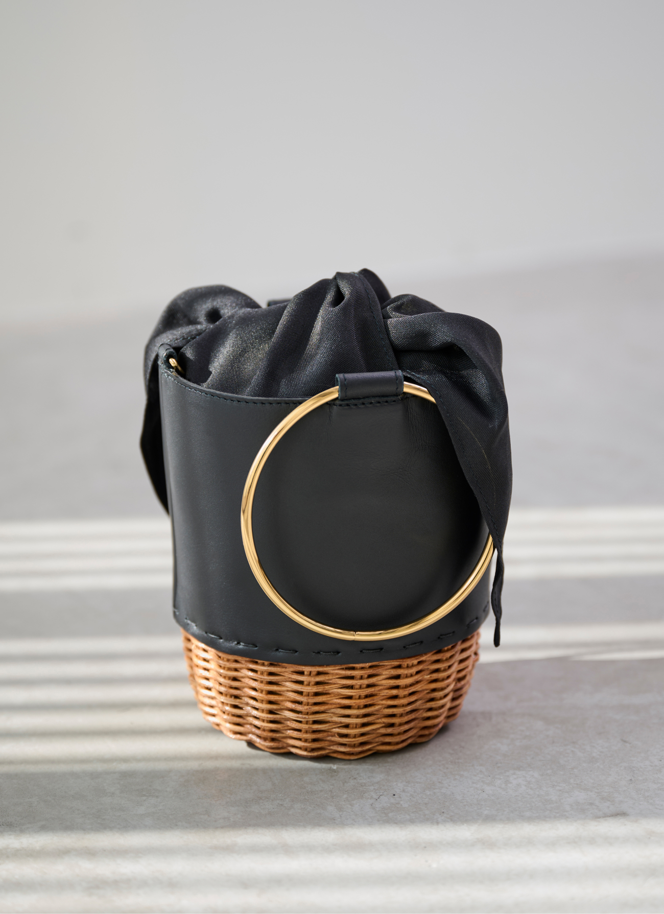 きれいめスタイルに馴染む、上質な牛革で仕立てた大人のためのかごバッグ。 天然素材の軽やかさとレザーの品格を併せ持ち、装いに上品なアクセントを添えます。