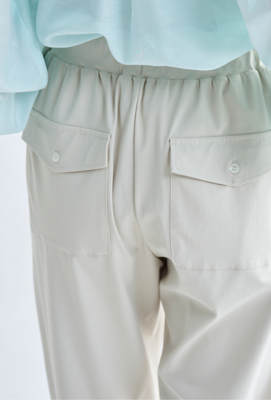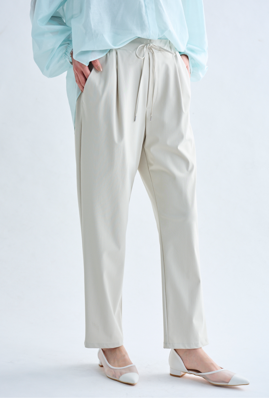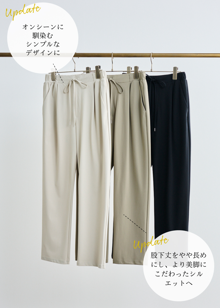 脚のラインを拾わない、程よくゆとりのあるテーパードシルエット