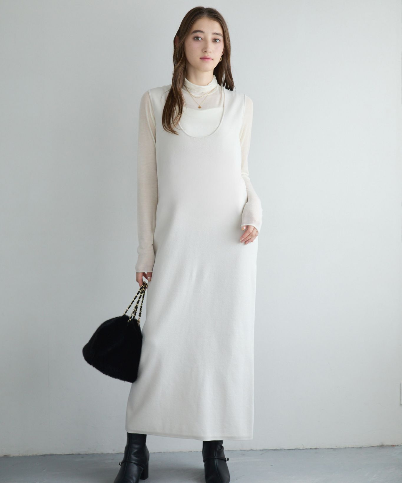 【おすすめスタイリング】:セットでお呼ばれにお召しいただける他、ワンピースはニットと、ブラウスは他のスカートやパンツなどと合わせて沢山着回しができます! -