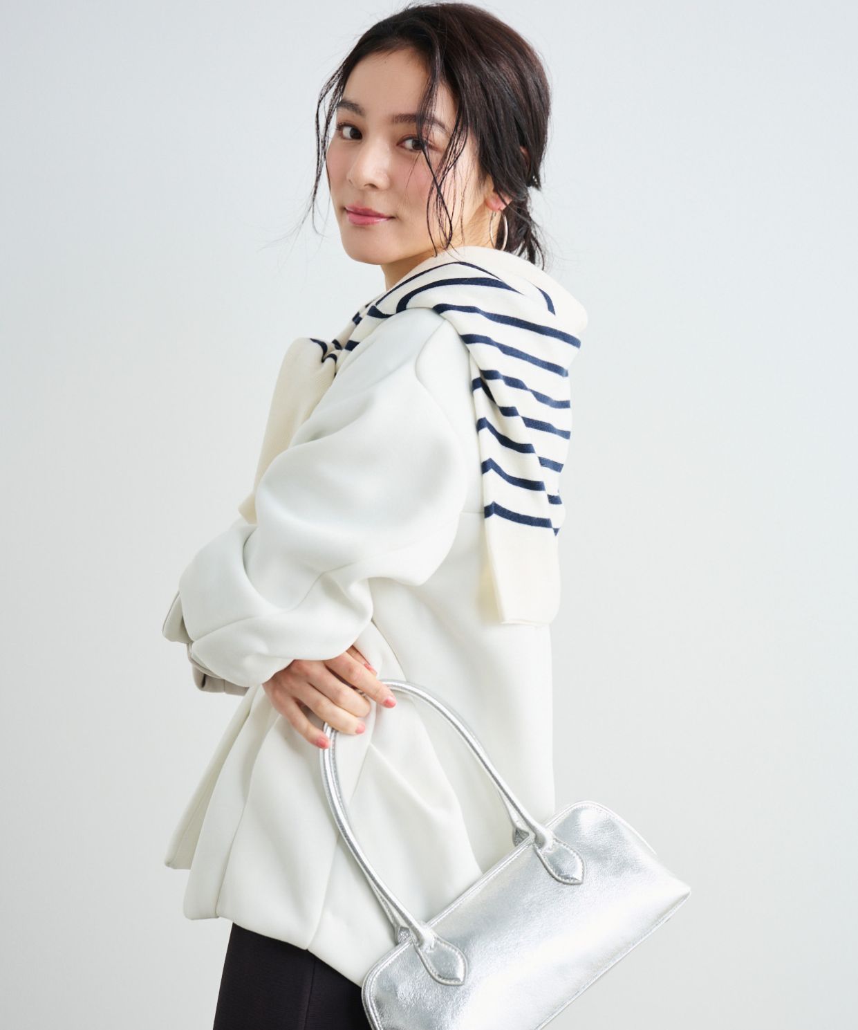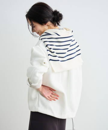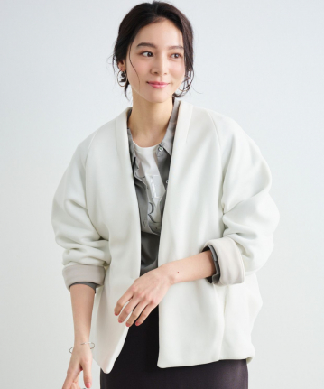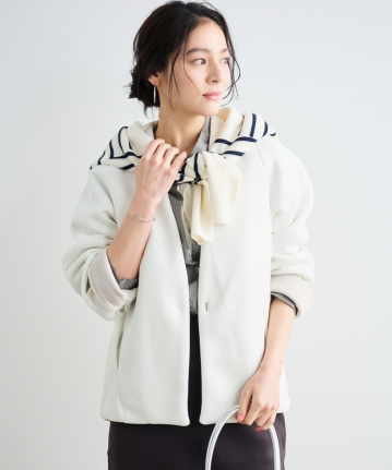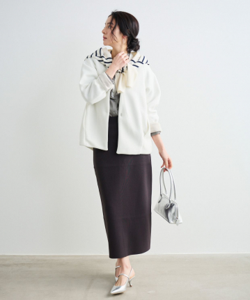 【着用感】:ヒップが隠れる丈感だが、重さがなくサラッと羽織れる。