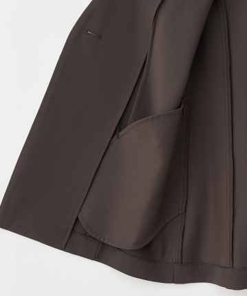 【素材感】: ツルッとした表情感で、オールシーズン着られる生地感。