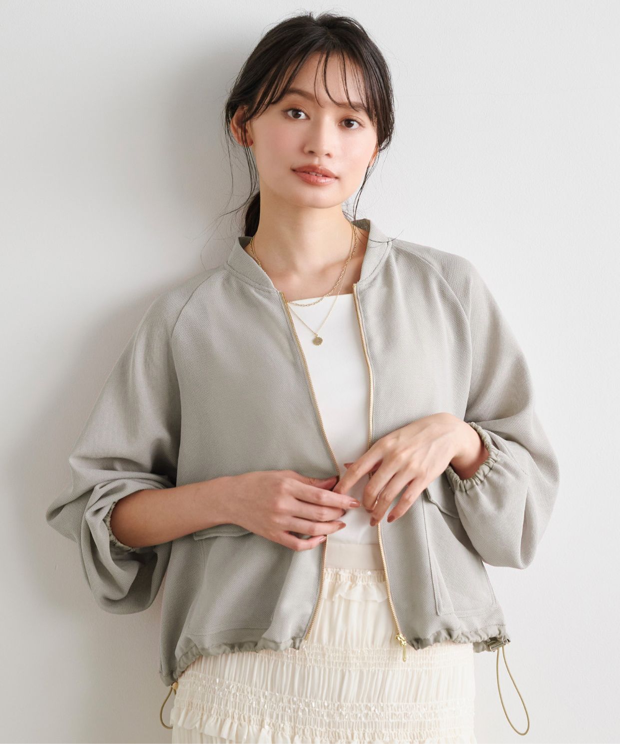 【着用感】: 丈感も短すぎないためサラッと羽織れる
