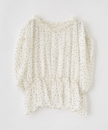 【素材感】:さらっと透け感のあるプリーツ素材。フロッキーのドットは立体感があり可愛い。