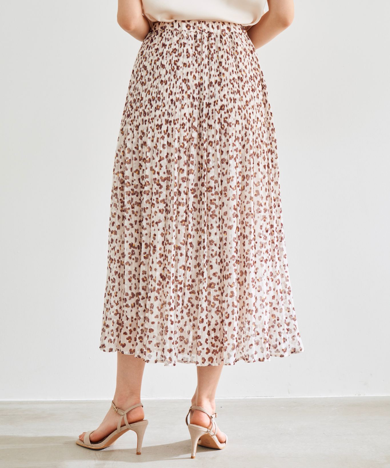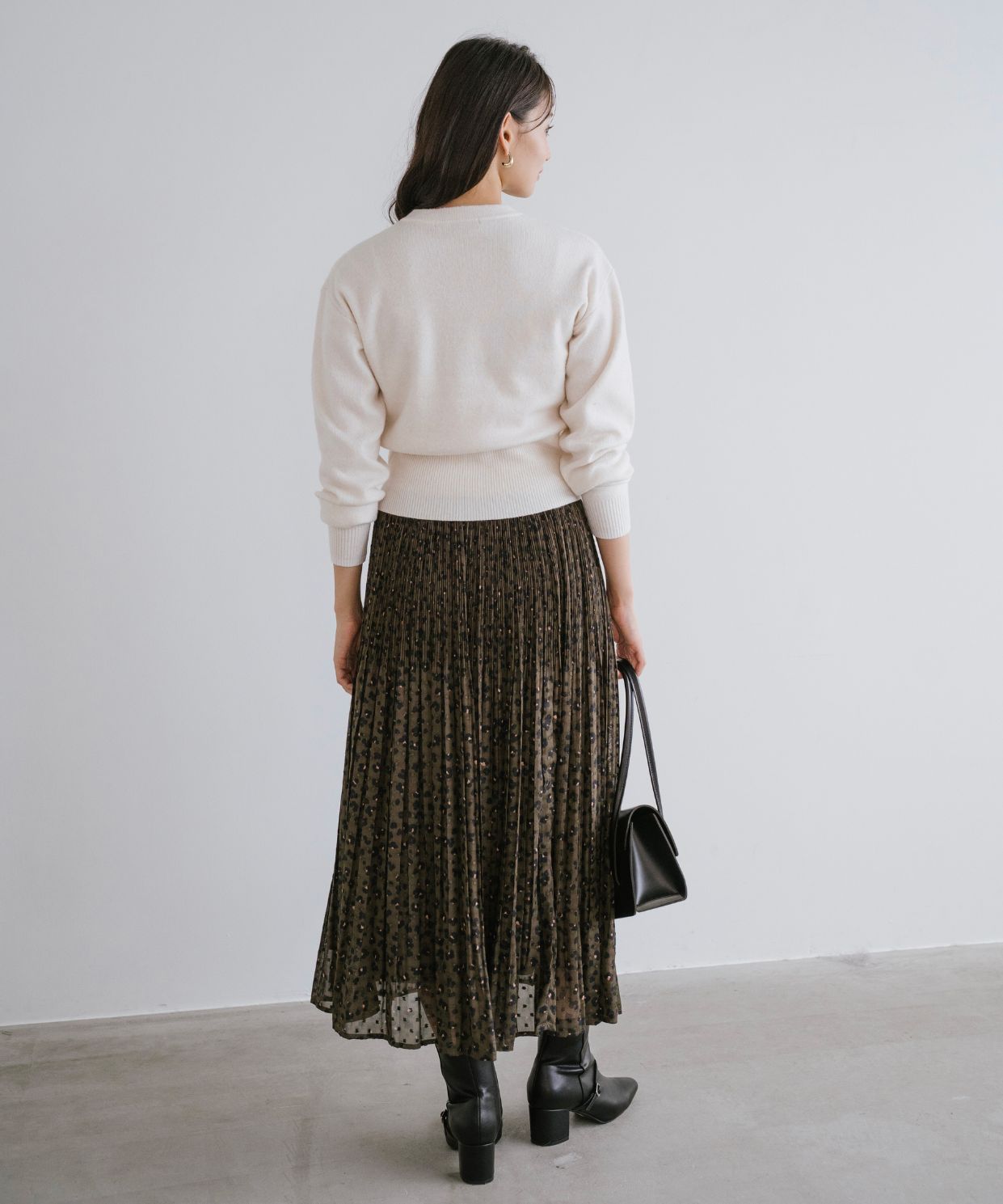 【素材感】:ジャガードの表面感のある素材にレオパードプリントを施しています。素材そのものは薄手です。