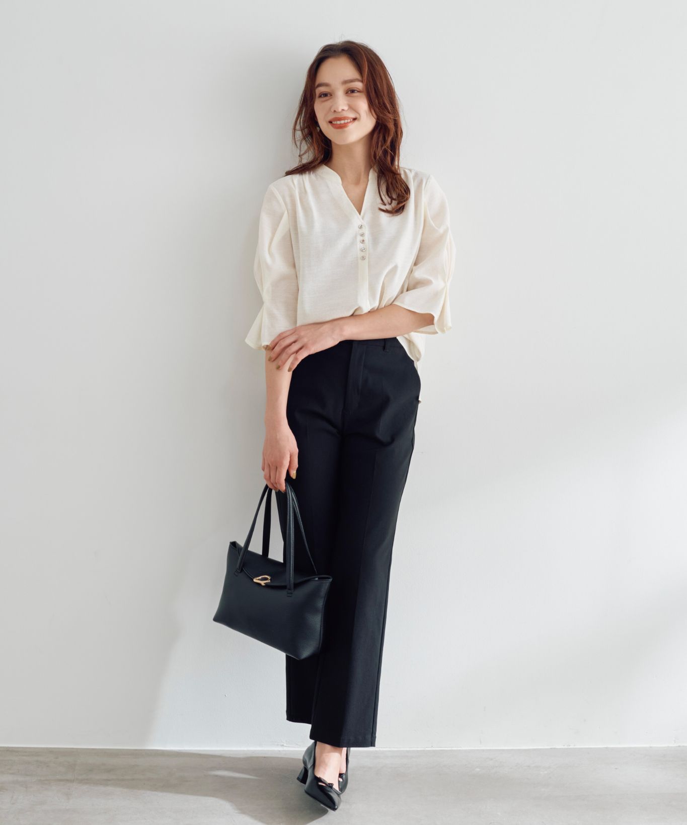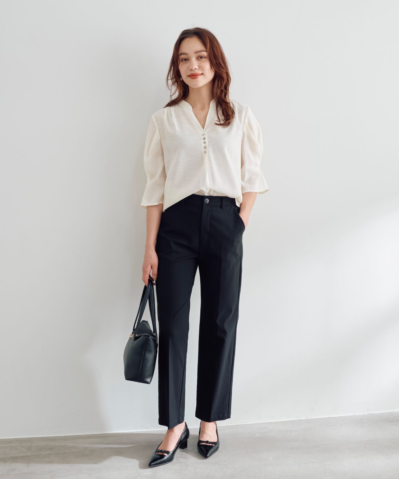 【おすすめスタイリング】:カジュアル派の方はオーバーサイズアイテムをアウトで。お仕事使いに綺麗めブラウス合わせもオススメ。 -